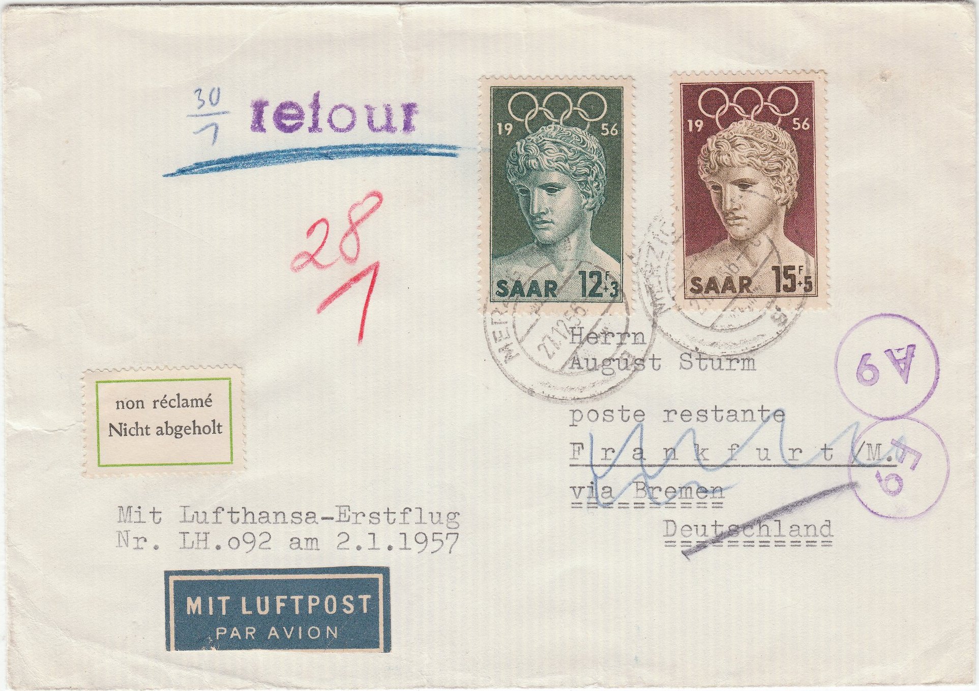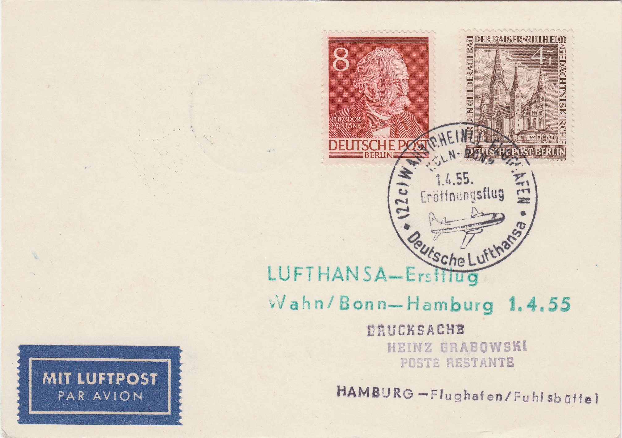 Der Beleg wurde per Sonderstempel am 11.08.1957 in Hamburg 36 entwertet und laut Bestätigungsstempel dann per Sonderflug des Aero-Club Hamburg e.V. mit der Maschine D-EMED nach Helgoland befördert.