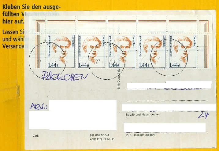 Portogerecht konnte sie als Mehrfachfrankatur von 2 Stück bis zum 31.12.2002 auf einem Kompaktbrief verwendet werden.