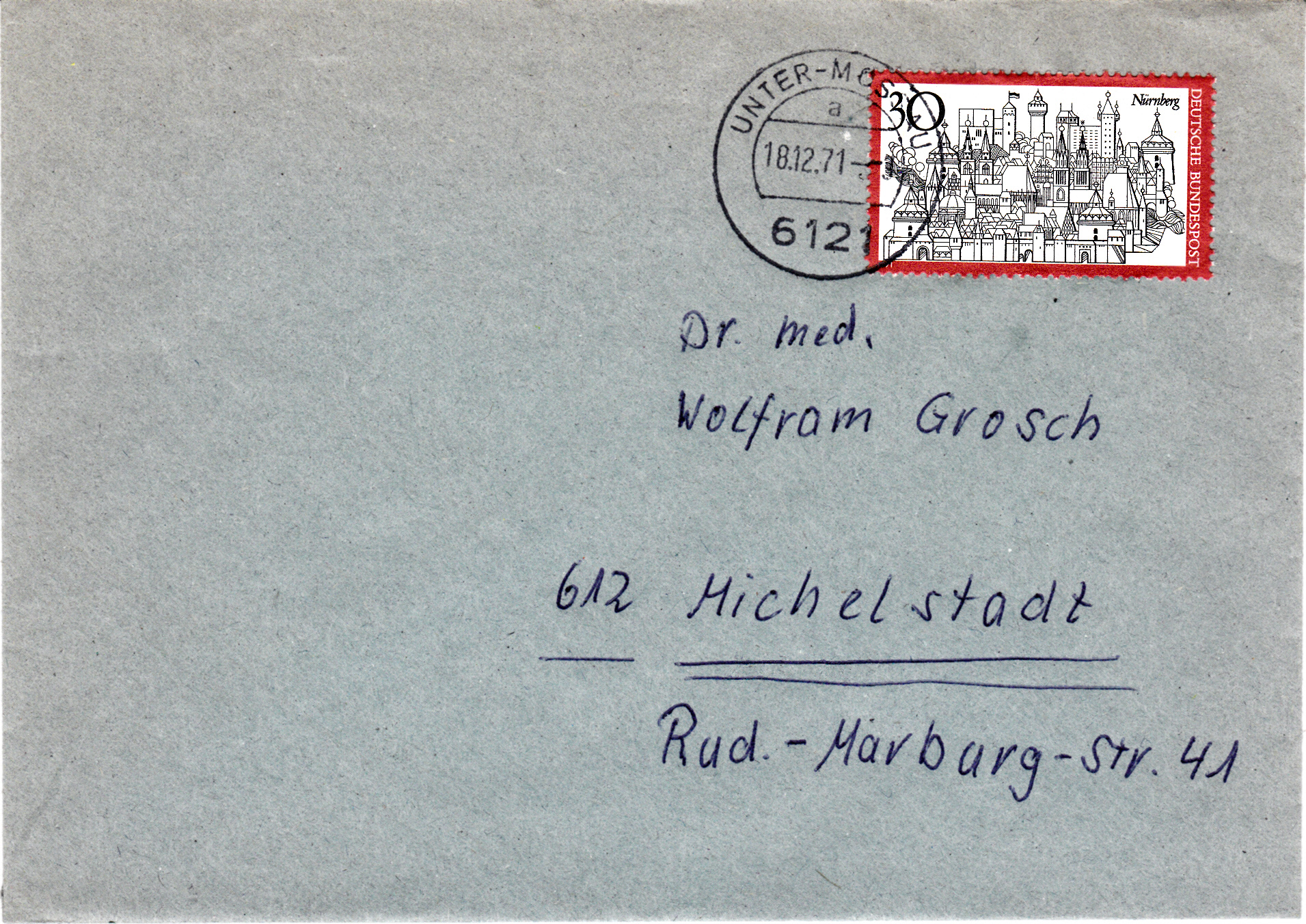 Dieser Brief wurde am 18.12.1971 von Unter-Mossau nach Michelstadt befördert.