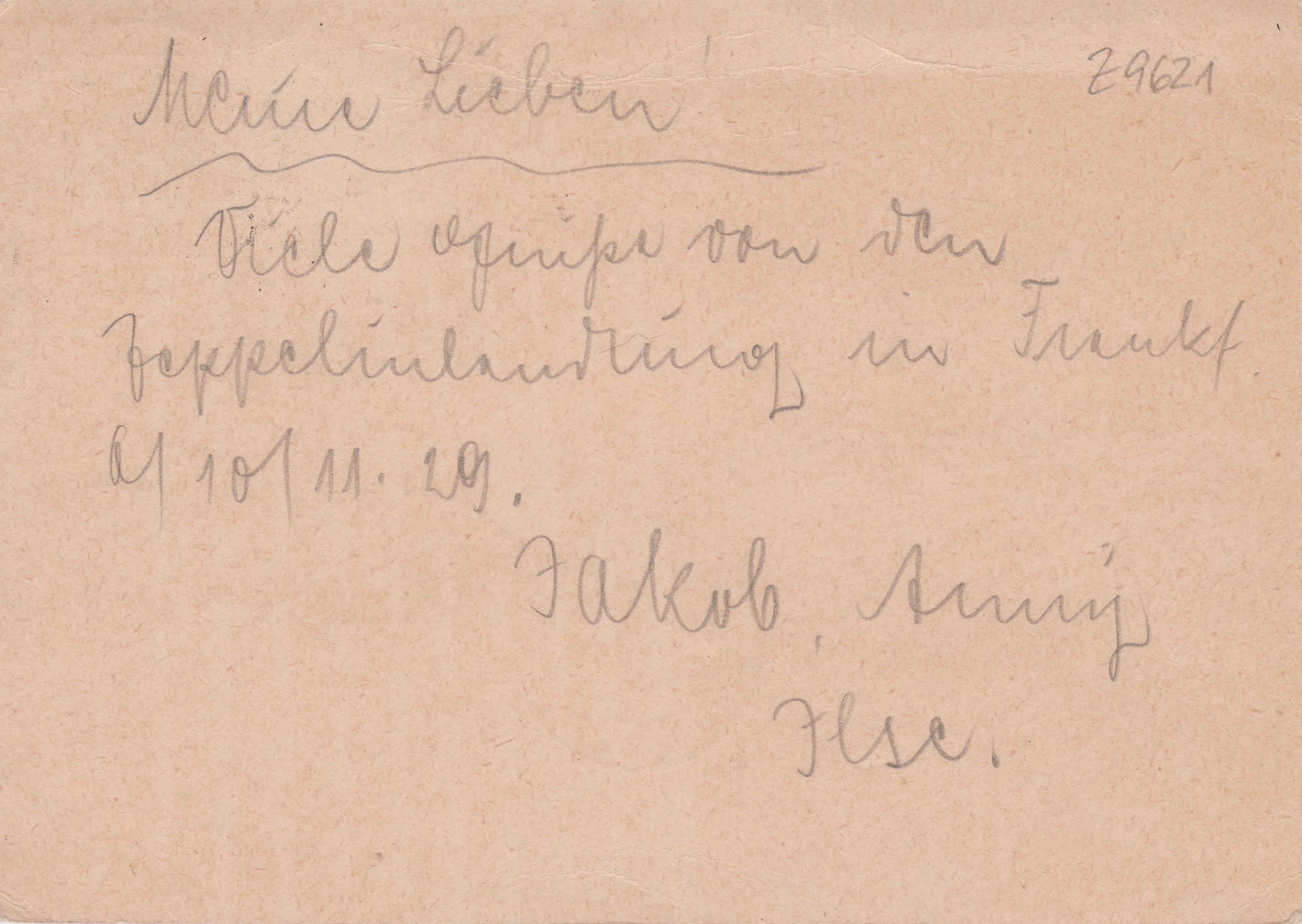 Ganzsache "Postkarte" 8 Pf Reichspräsidenten, MiNr. P 181 I, am 10.11.1929 mit 50 Pf Zusatzfrankatur aufgeliefert in FRANKFURT/MAIN und "Mit Luftschiff "Graf Zeppelin" befördert":