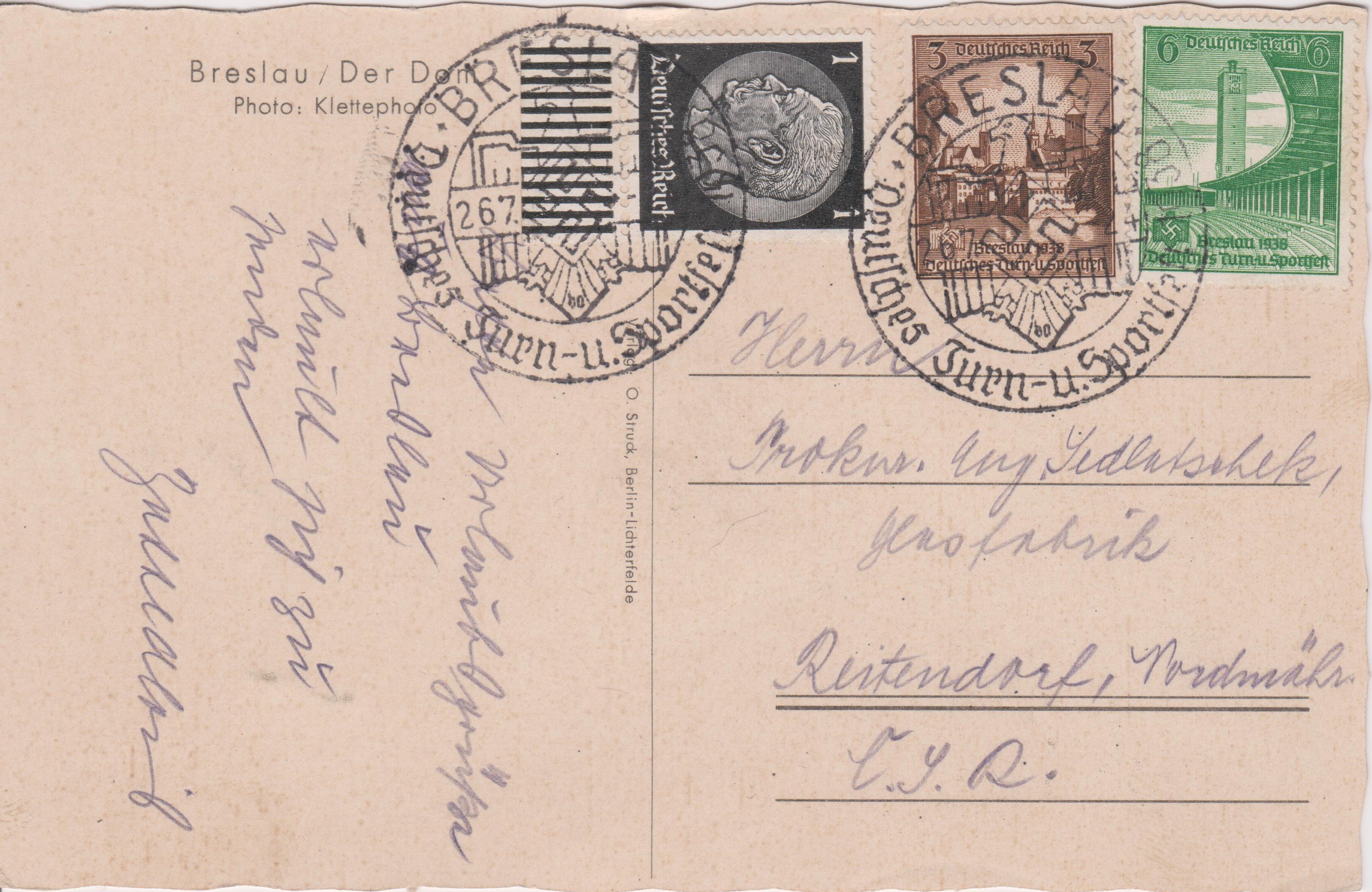 Für Postkarten in die Tschechoslowakische Republik galt statt 15 Pf ein Porto von 10 Pf!