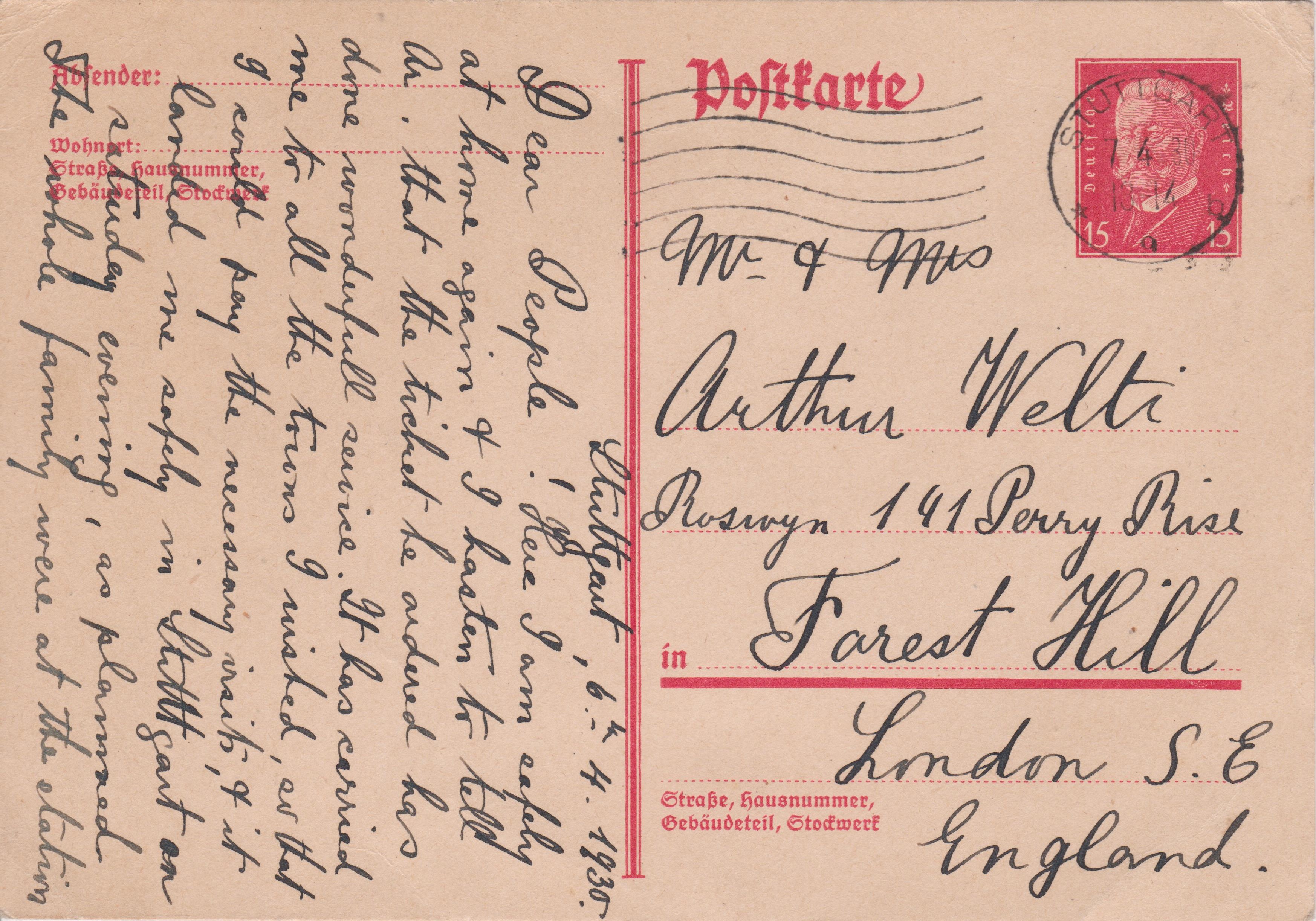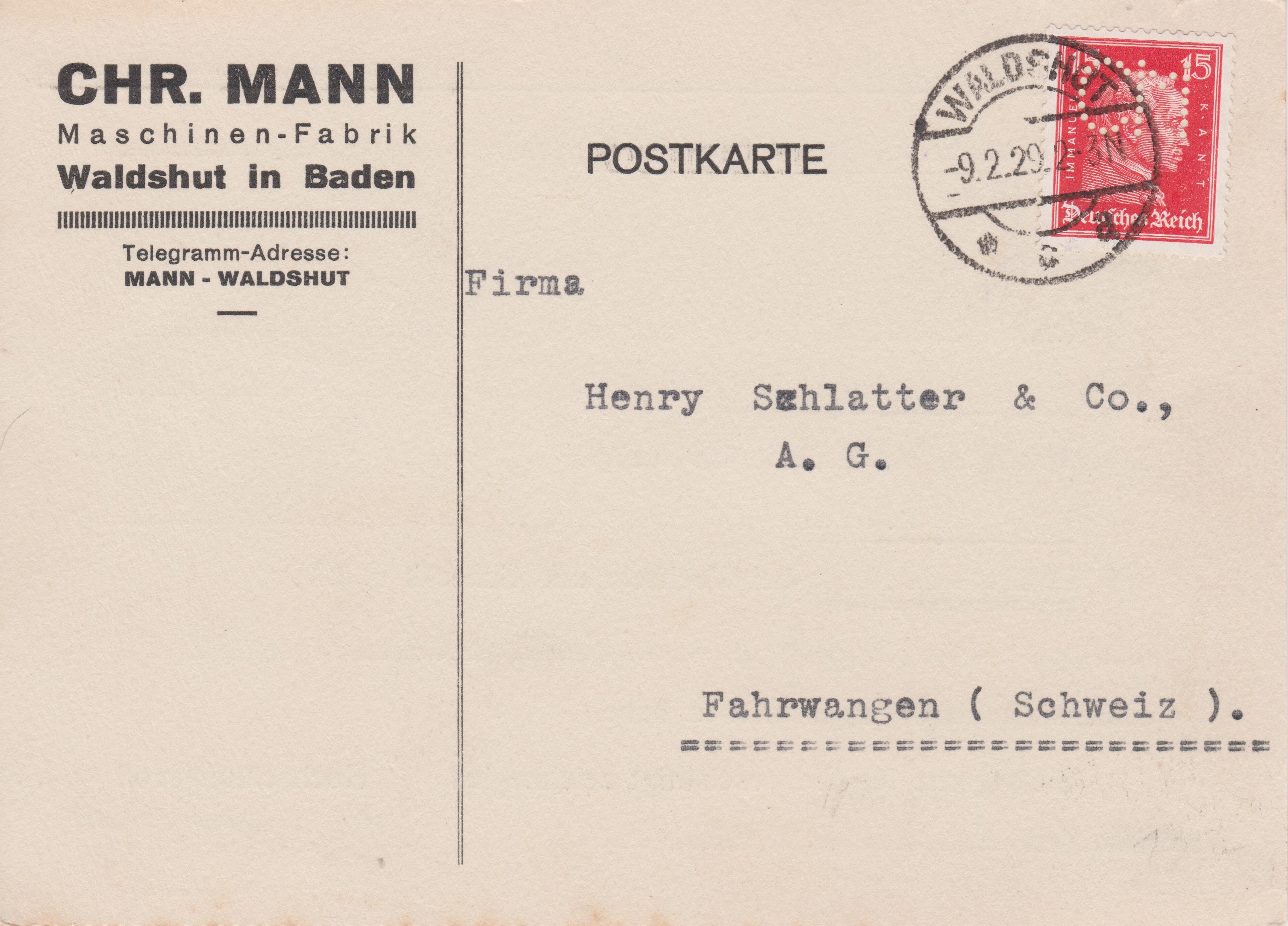 Die Portostufe 15 Pf galt für Postkarten ins Ausland ab dem 01.01.1925.