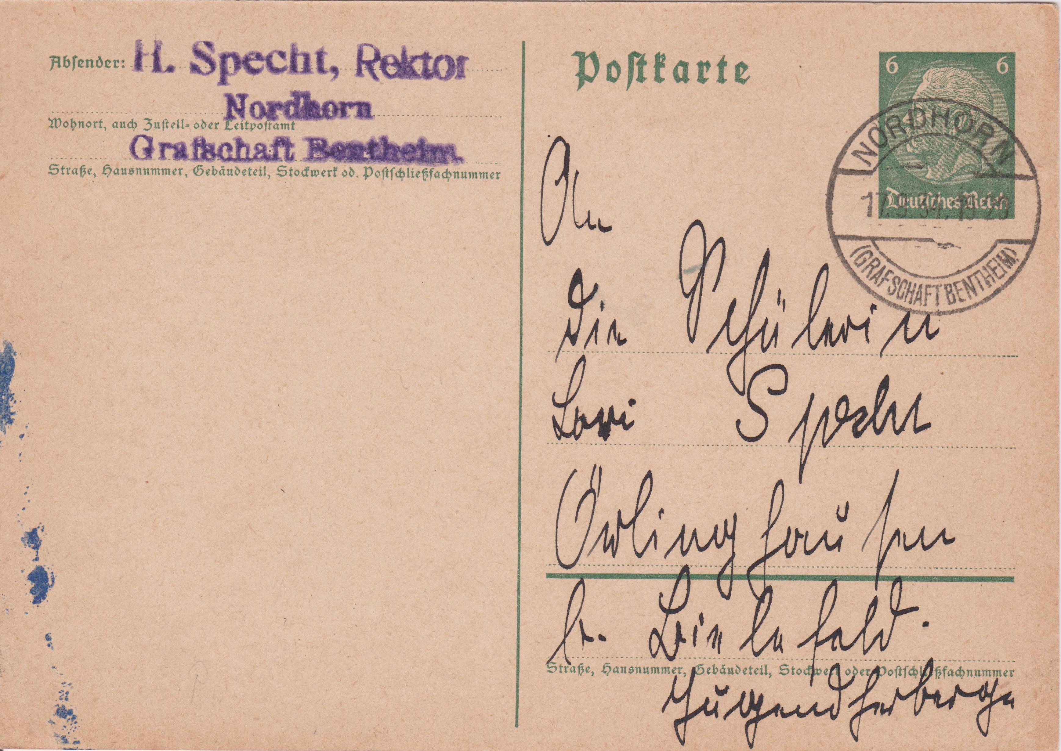 Ganzsache Deutsches Reich MiNr. P 226 I mit Tagesstempel "NORDHORN (GRAFSCHAFT BENTHEIM)" in zwei verschiedenen Typen:
