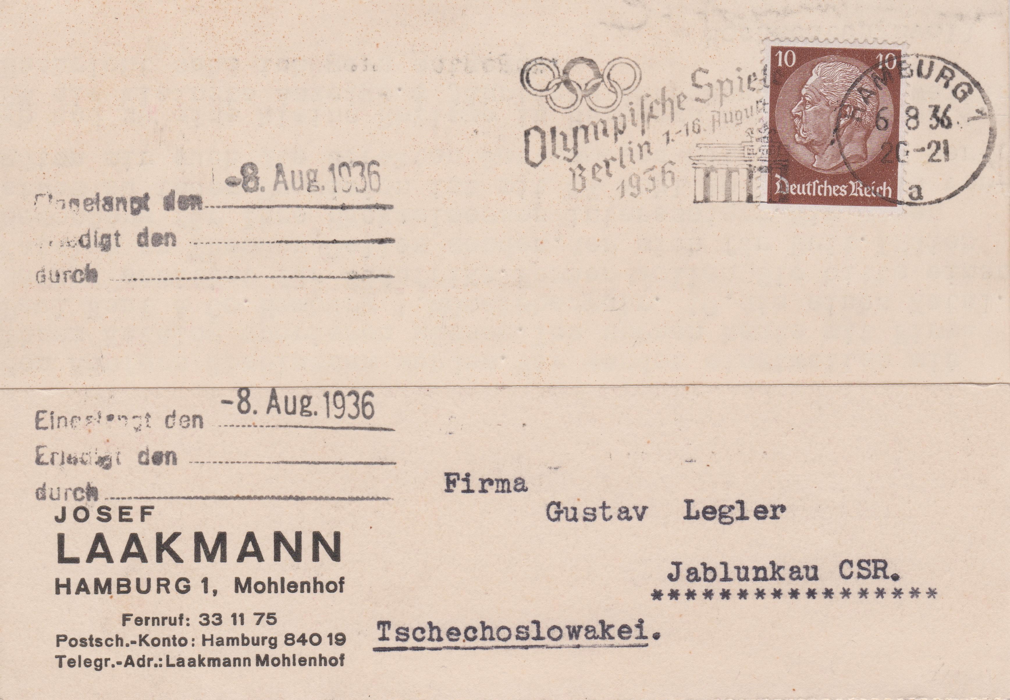 Für Postkarten in die Tschechoslowakische Republik galt statt 15 Pf ein Porto von 10 Pf!
