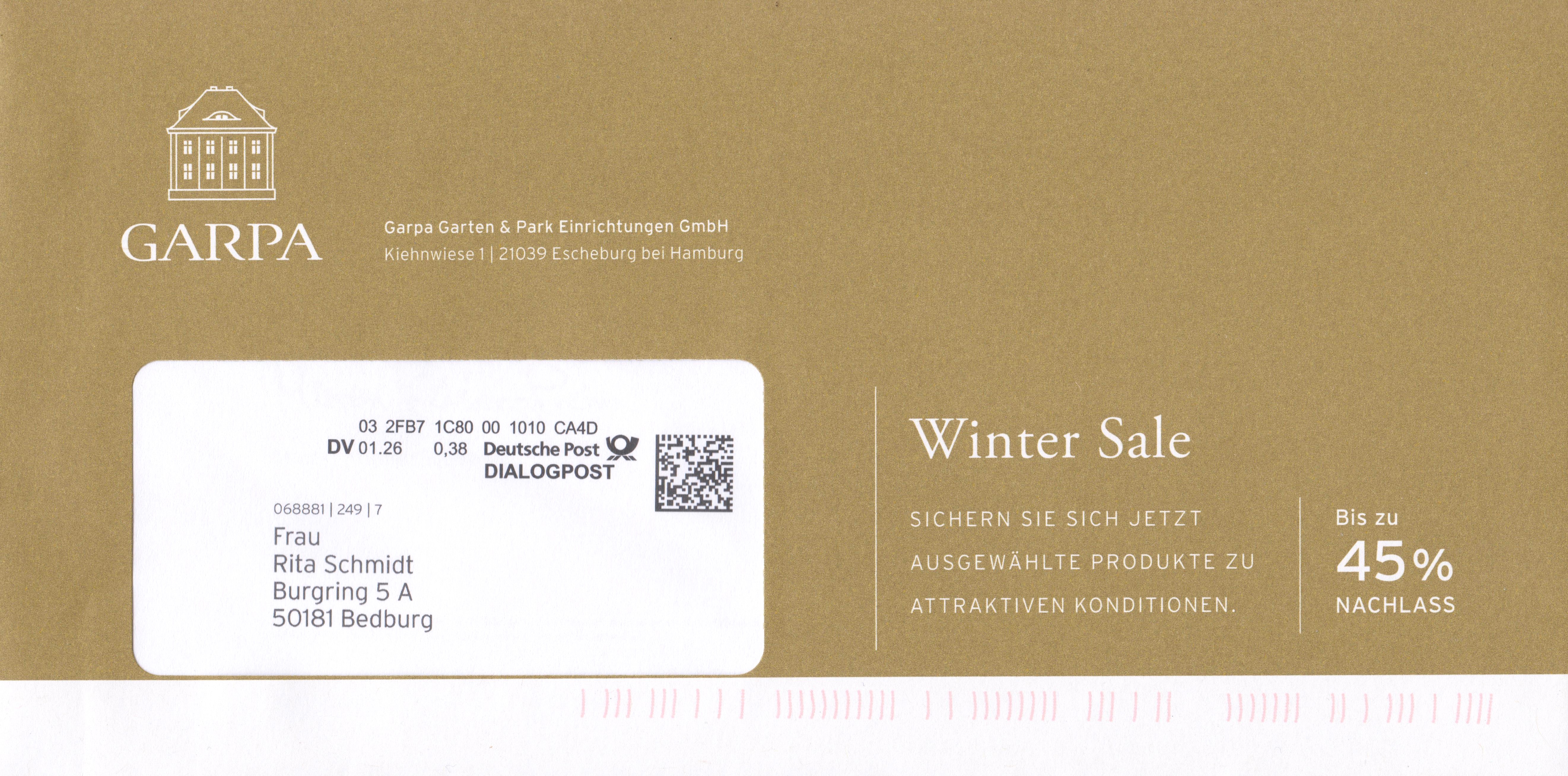 Aktuele Dialogpost aus Januar 2026, Portostufe 0,38 €: