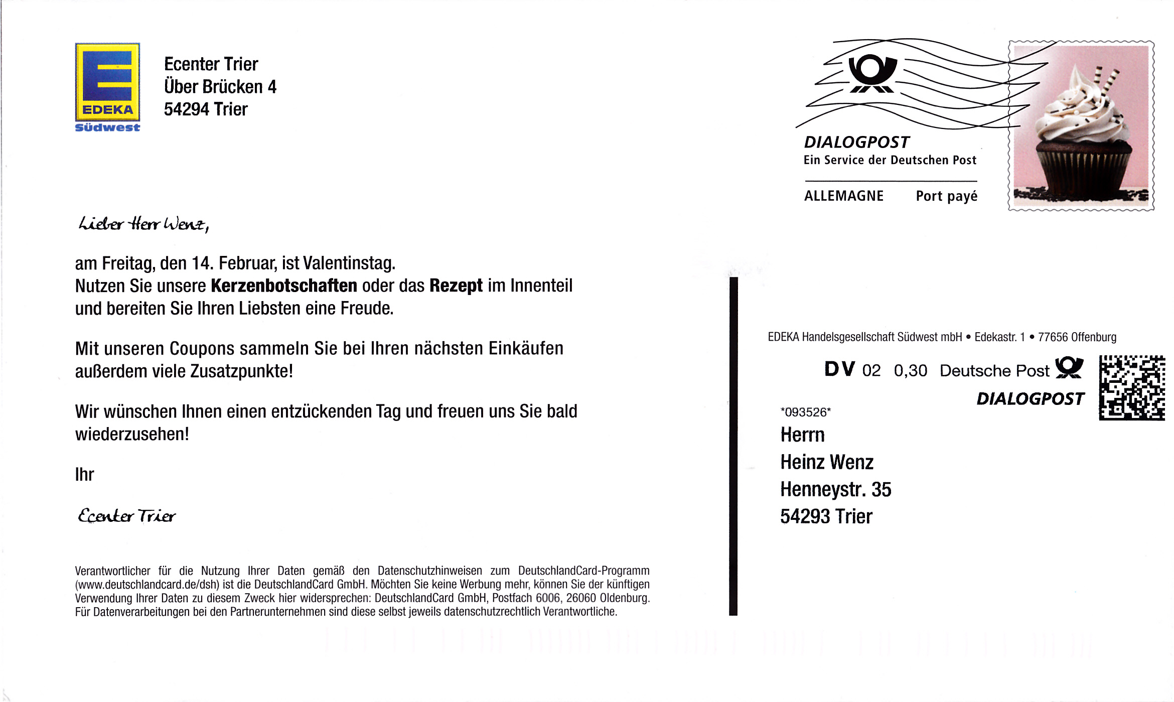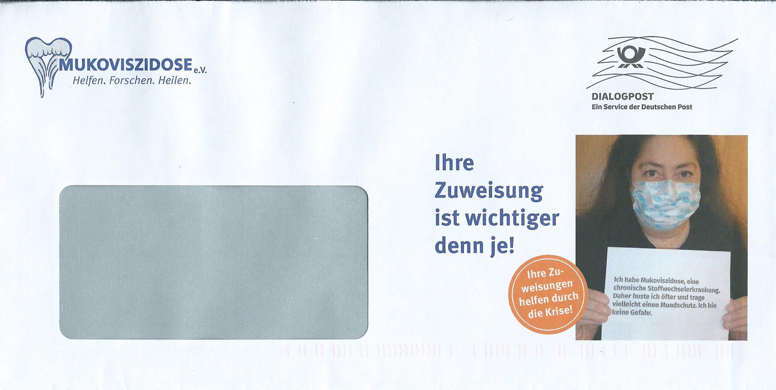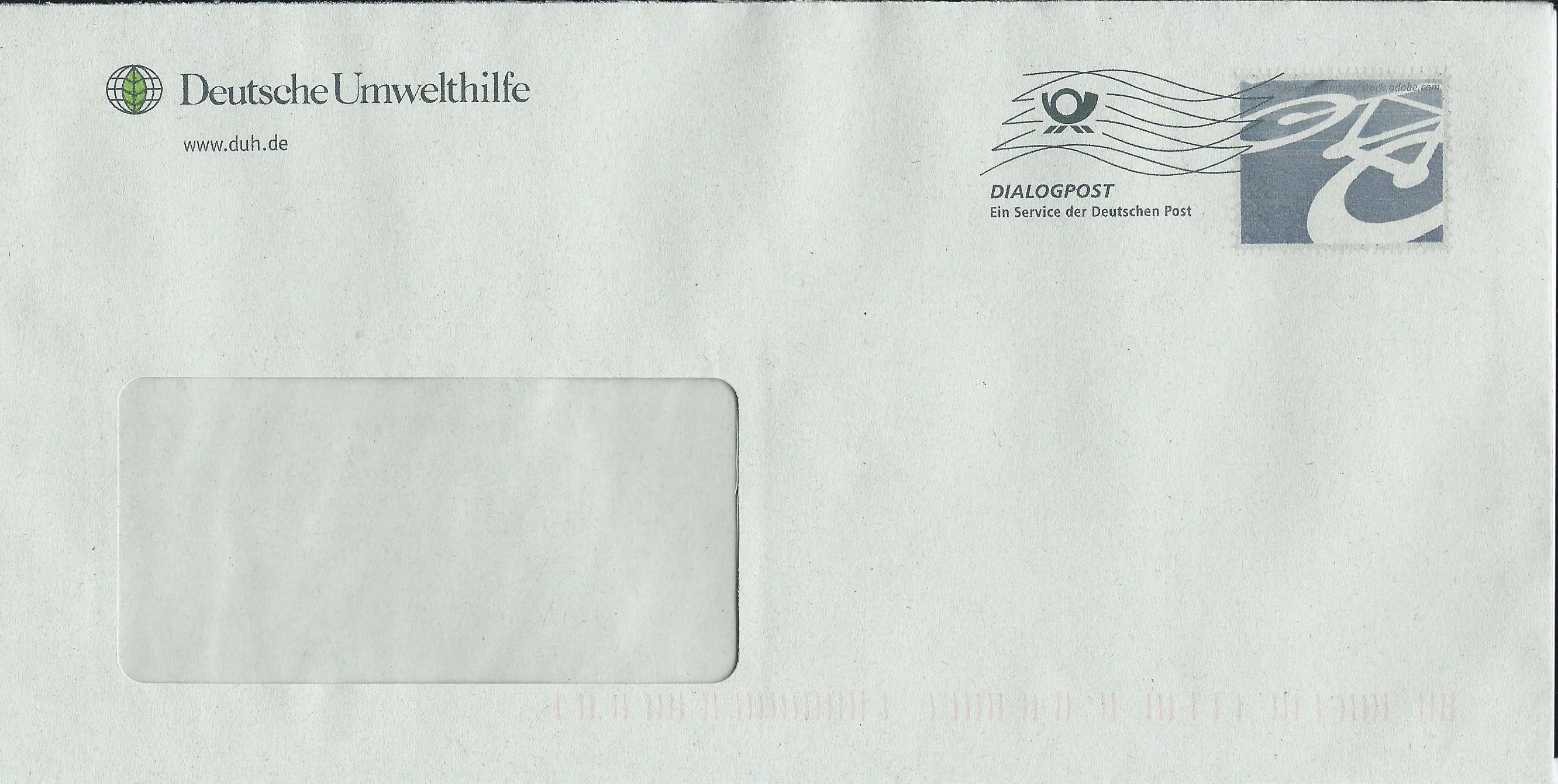Und ein Beleg von der Deutschen Umwelthilfe, hier haben wir unter der Frankierwelle einen markenähnlichen Zudruck mit einem auf der Straße aufgemaltem Fahrrad: