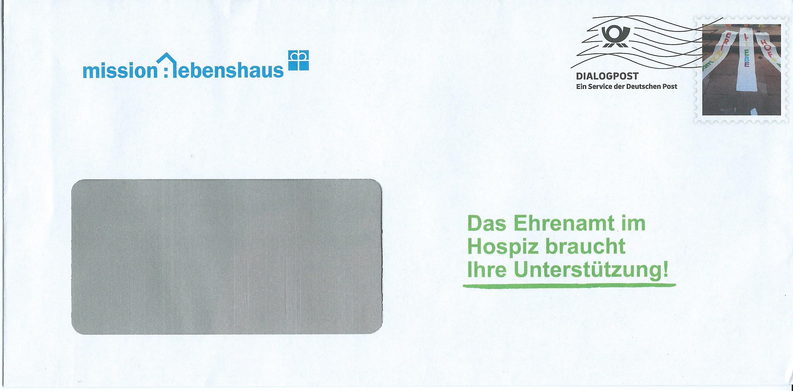 Der zweite stammt von der Mission Lebenshaus und hat unter der Frankierwelle einen markenähnlichen Zudruck einer Innenansicht einer Kirche, den Stufen zum Altar: