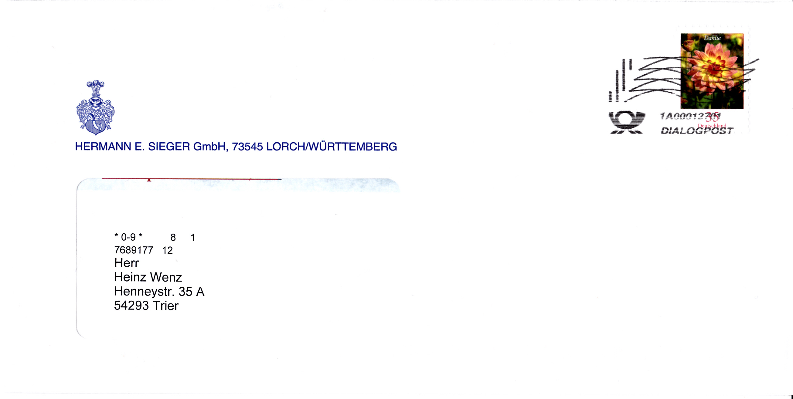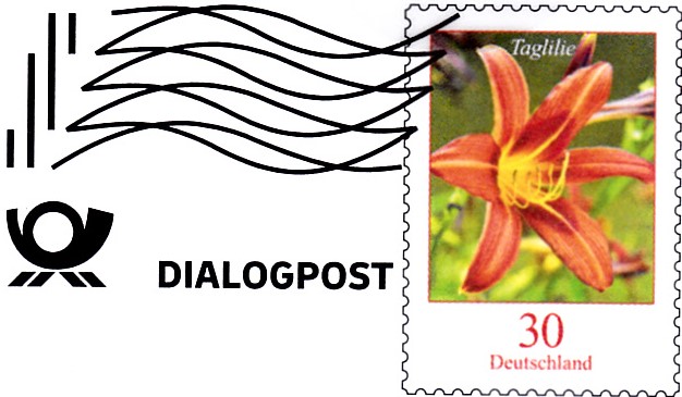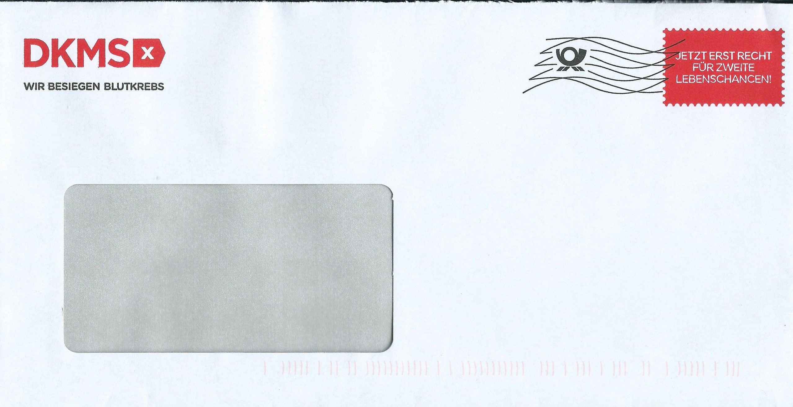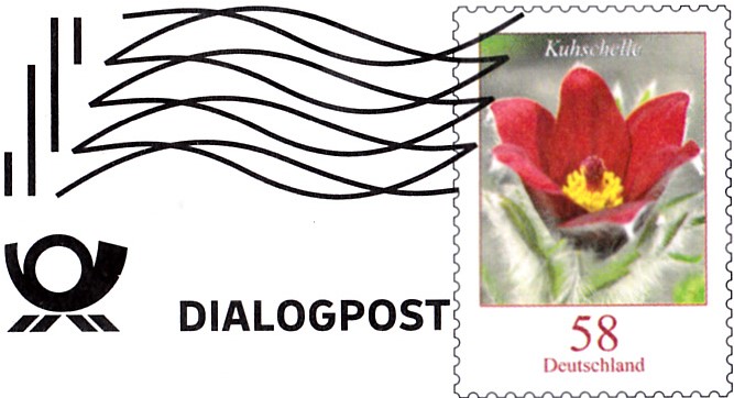 hier habe ich einen etwas außergewöhnlichen Dialogpost-Umschlag: Er stammt von der DKMS und hat auf dem markenähnlichen Zudruck eine Frankierwelle ohne den Zusatz „Dialogpost“.