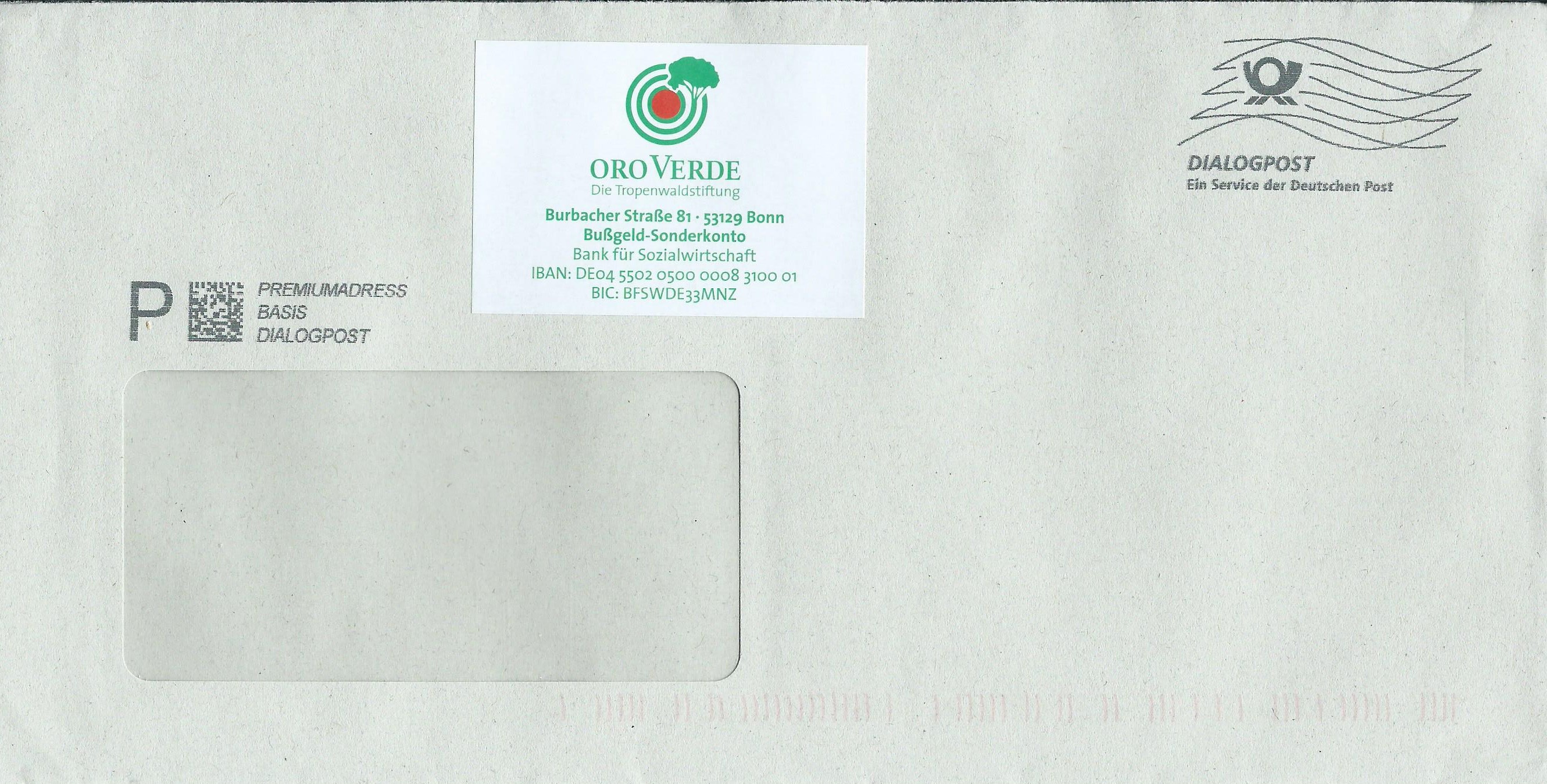 Dazu ein Umschlag von terre des hommes, ebenfalls ohne Markenähnlichen „Wertstempel“, nur die bekannte Frankierwelle.