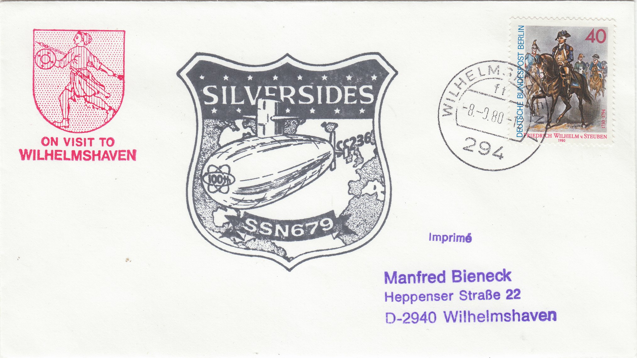 Die USS SILVERSIDES (SSN-679) war gemeinsam mit ihrem Schwesterschiff USS ARCHERFISH (SSN-678) am 08.08.1980 zu Besuch in Wilhelmshaven, was dieser Beleg dokumentiert: