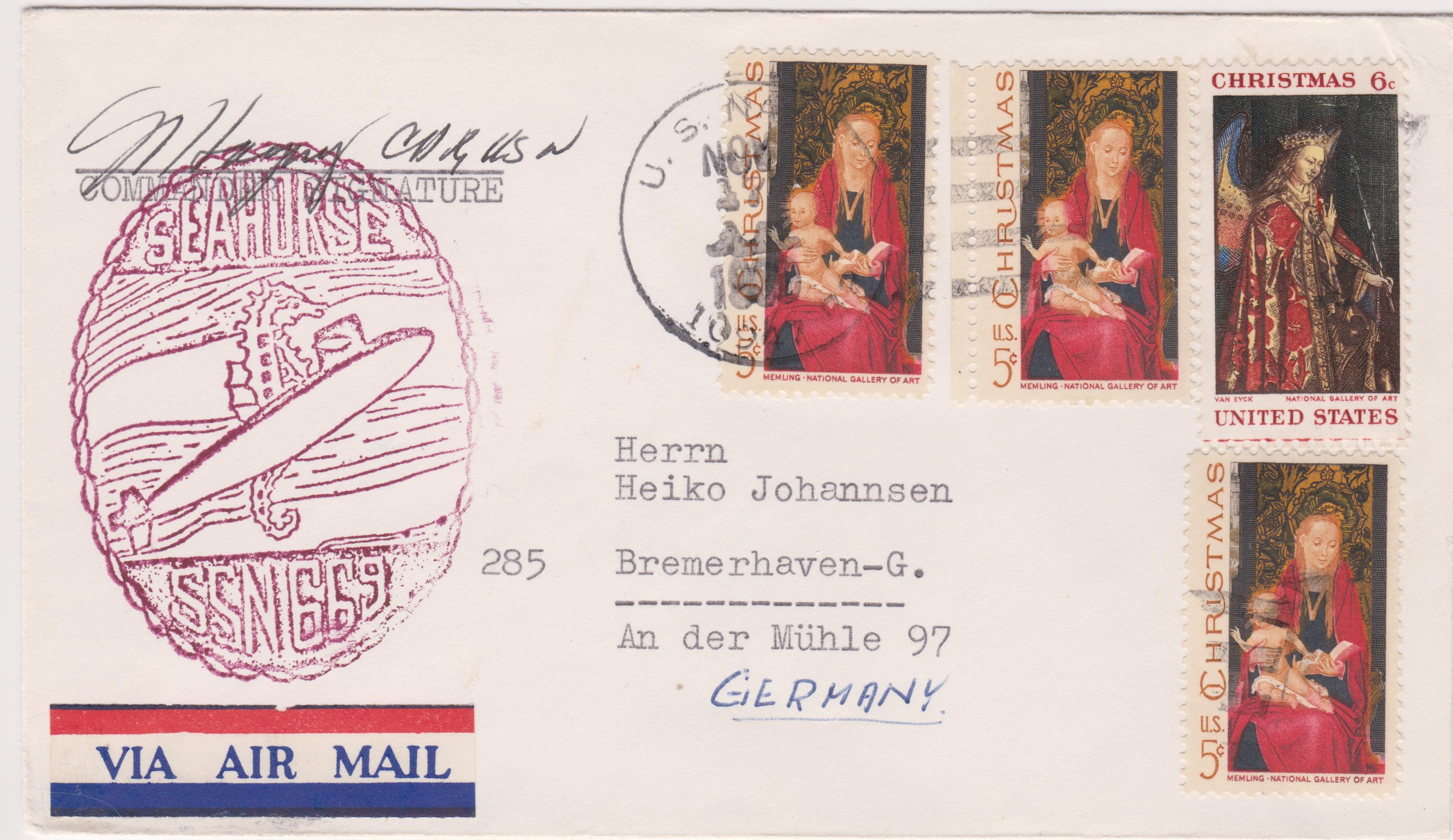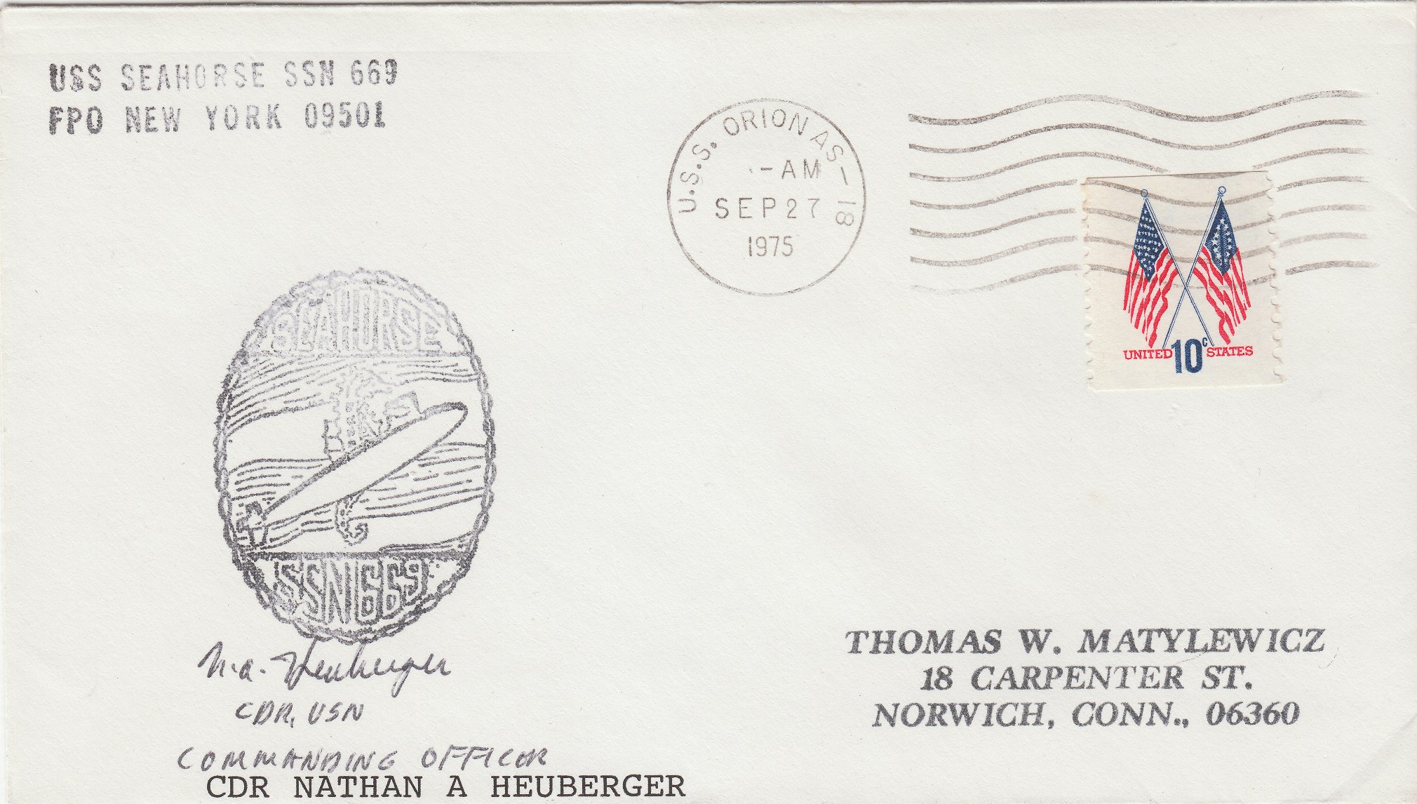 Die Frankatur wurde am 10.01.1971 an Bord des Tenders USS ORION (AS-18) entwertet: