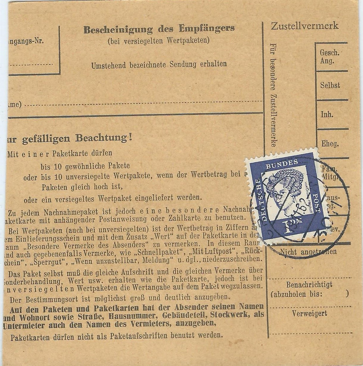 Daraus ergibt sich, dass auf der Paketkarte des Jahres 1962 kein "X" notwendig war.
