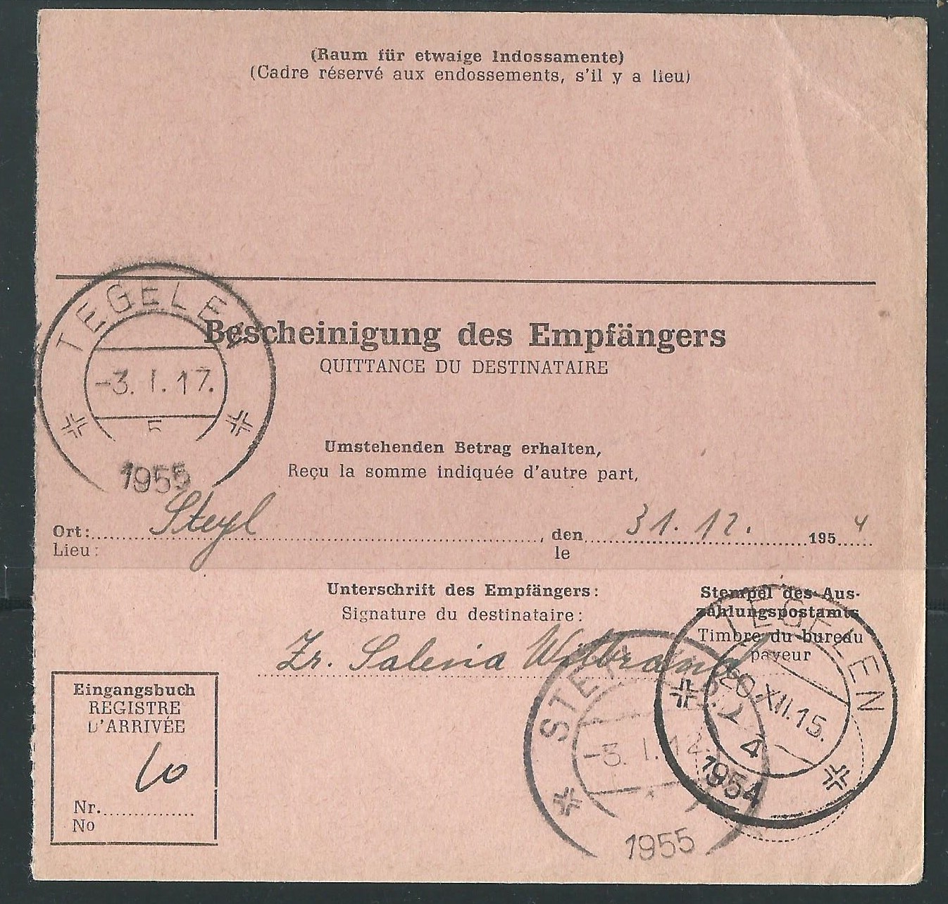 Auf der Rückseite wurde dann vom Empfänger der Erhalt quittiert: