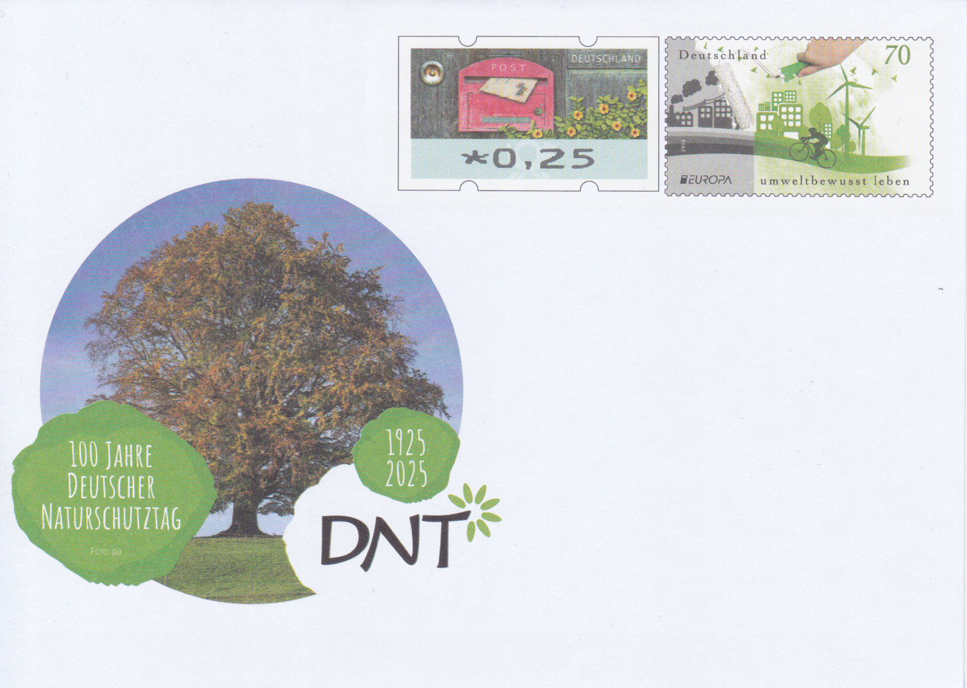 Zum Jubiläum "100 Jahre Deutscher Naturschutztag erschien 2025 ein Sonderumschlag der Deutschen Post AG mit dem Wertzeicheneindruck der Europamarke 2016 und einer Automatenmarke zu 0,25€. Hier zeige ich ein ungebrauchtes Exemplar.