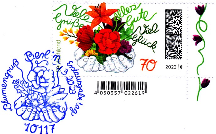 Klappkarte des Vorstandsvorsitzenden der Deutschen Post AG mit einer Marke (MiNr 3755) "Blumengruß" und dem Ersttagsonderstempel Bonn.