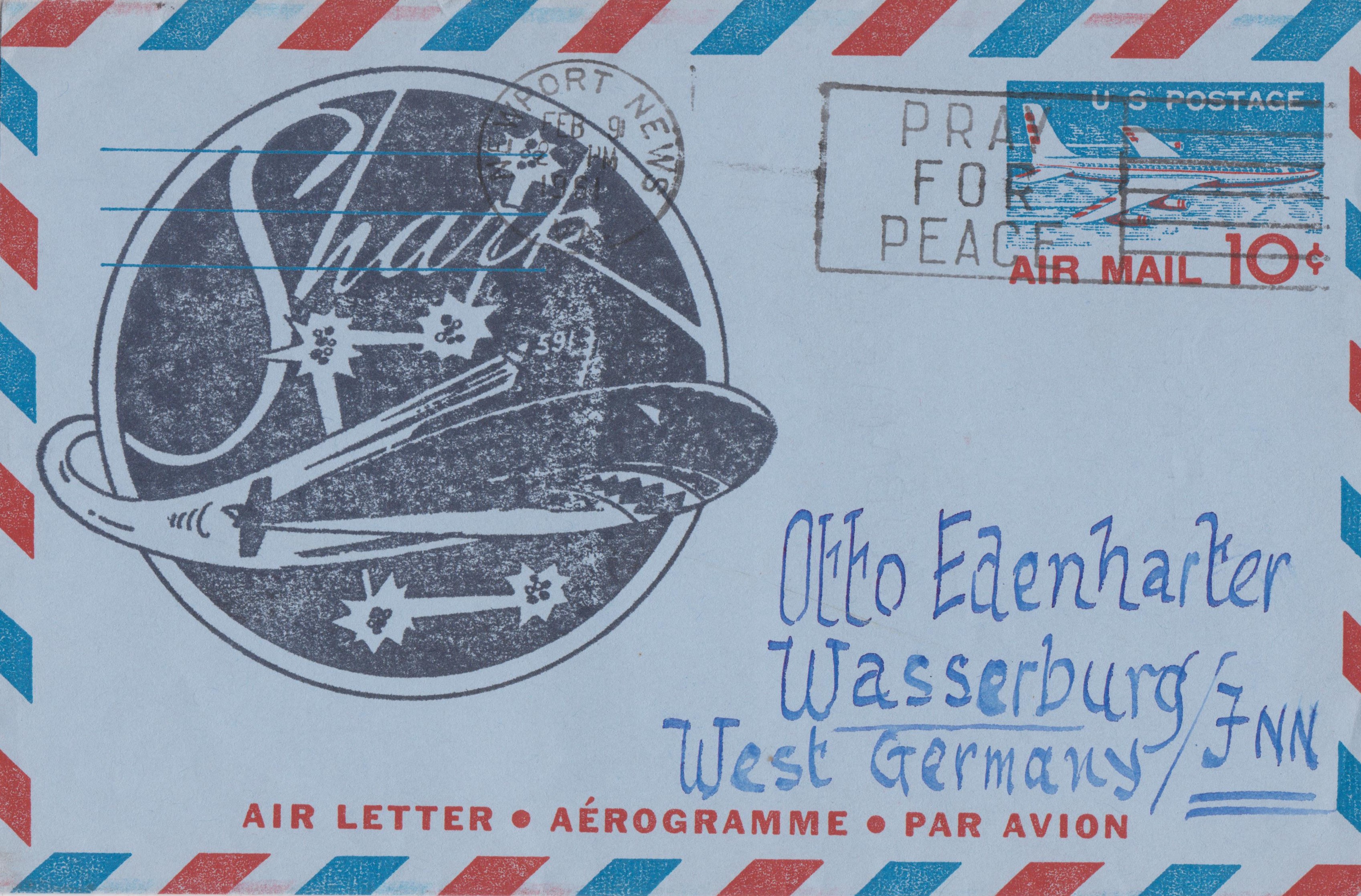 Dieser bereits kurz nach der am 09.02.1961 erfolgten Indienststellung an Bord aufgegebene Beleg trägt einen Cachetstempel der USS SHARK (SSN-591) in Schwarz.