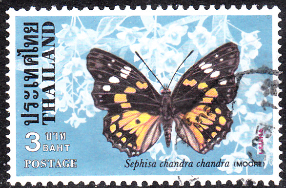 Hier eine Marke aus Bhutan (MiNr 606) mit einem Sephisa chandra.