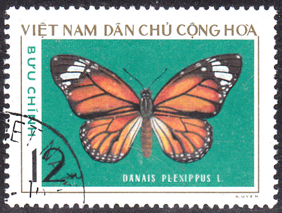 Aus Vietnam kommt diese Marke (MiNr 834) mit einem Monarchfalter (Danaus plexippus).