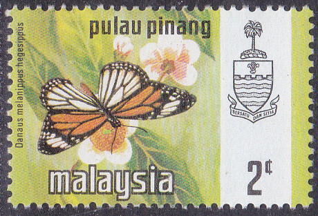 Auf dieser Marke aus Perlis (MiNr 48), einem der Malaiischen Staaten, ist ein Vertreter der Unterart Danaus melanippus hegesippus zu sehen.