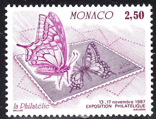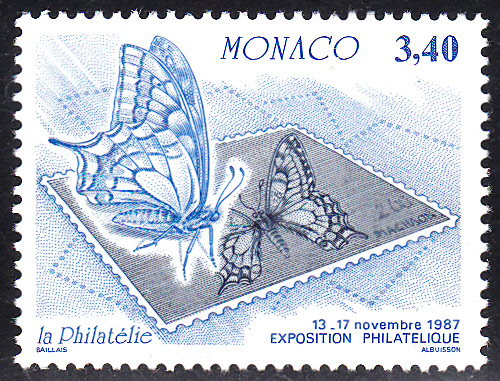 Für diese Marke aus Monaco (MiNr 1814) zu einer Internationalen Briefmarkenausstellung "50 Jahre Amt für Briefmarkenausgaben" wurde als Motiv eine Darstellung mit einem Schwalbenschwanz (Papilio machaon) ausgewählt.