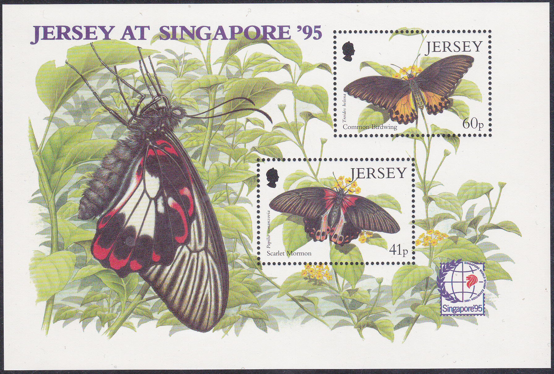 Auf einer Marke aus Jersey (MiNr 717) ist ein Papilio rumanzovia abgebildet. Im Michel wird er Mormonenfalter (Papilio rumanzovia) genannt. Er wird auf Deutsch auch Scharlachroter Schwalbenschwanz genannt.
