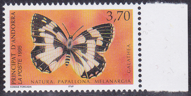 Bei der französische Post in Andorra ist ebenfalls eine Marke (MiNr 484) mit einem Schachbrett oder Damenbrett (Melanargia galathea) erschienen.