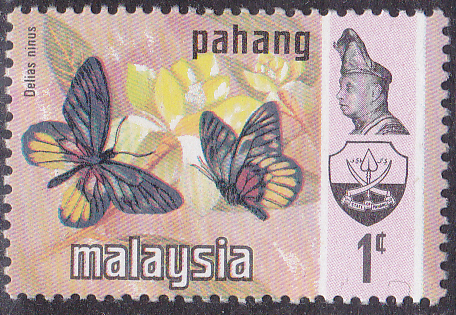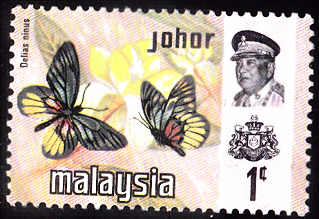 Auf dieser Marke aus Johor (MiNr 161), einem der Malaiischen Staaten, sind zwei Pareronia valeria zu sehen.