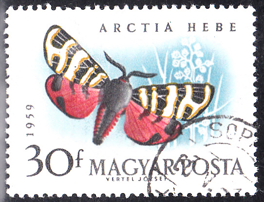 Ein zweiter Englischer Bär (Arctia festiva) sehen wir auf dieser Marke aus Ungarn (MiNr. 1634 A).