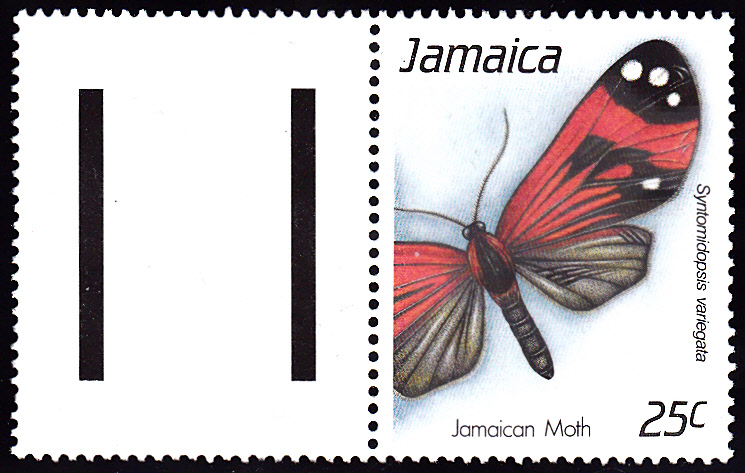 Auf einer Marke aus Jamaika (MiNr 725) wird ein Syntomidopsis variegata gezeigt.