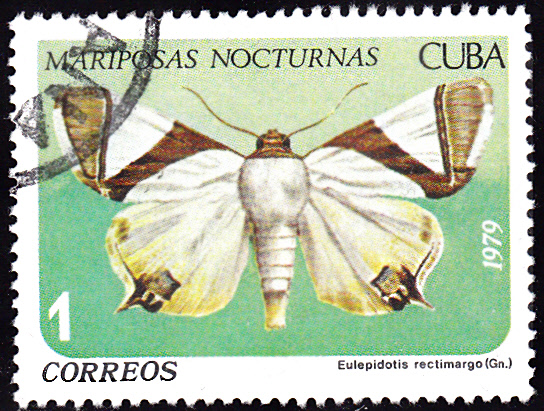 Hier eine Marke aus Kuba (MiNr 2397) mit einem Eulepidotis rectimargo.