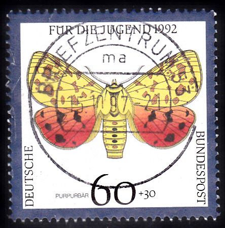 Die Jugendmarken der Deutschen Bundespost zeigten 1992 gefährdete Nachtfalter. Auf der Marke zu 60+30Pf (MiNr 1602) wurde ein Purpurbär (Rhyparia purpurata) abgebildet.