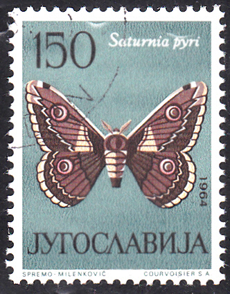 Auf dieser Marke aus Jugoslawien (MiNr 1073) ist ein Wiener Nachtpfauenauge (Saturnia pyri) abgebildet.