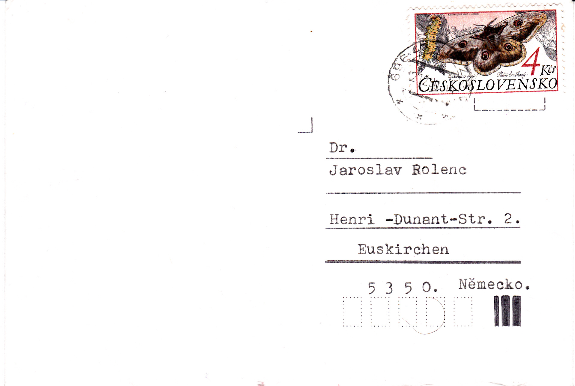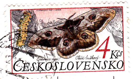Auf dieser Marke aus der Tschechoslowakei (MiNr 2905) wird ebenfalls ein Wiener Nachtpfauenauge (Saturnia pyri) gezeigt. Es wird auch Großes Nachtpfauenauge genannt. Auf dieser Marke wird links auch eine Raupe dieser Art gezeigt.