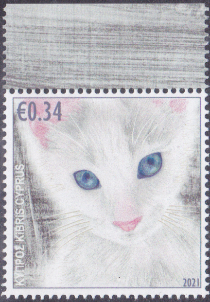 Aus Zypern kommt diese Marke (MiNr 1466) mit einer weißen Katze.
