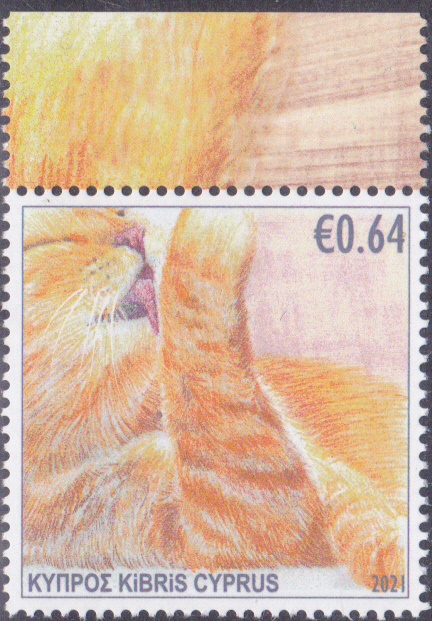 Die letzte Marke der Serie aus Zypern (MiNr 1469) zeigt eine rot-getigerte Katze.
