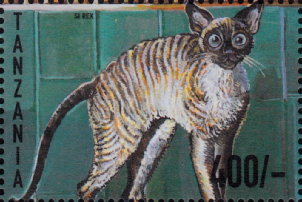 Auf dieser Marke aus Tansania (MiNr 3906) ist eine Si-Rex-Katze zu sehen.