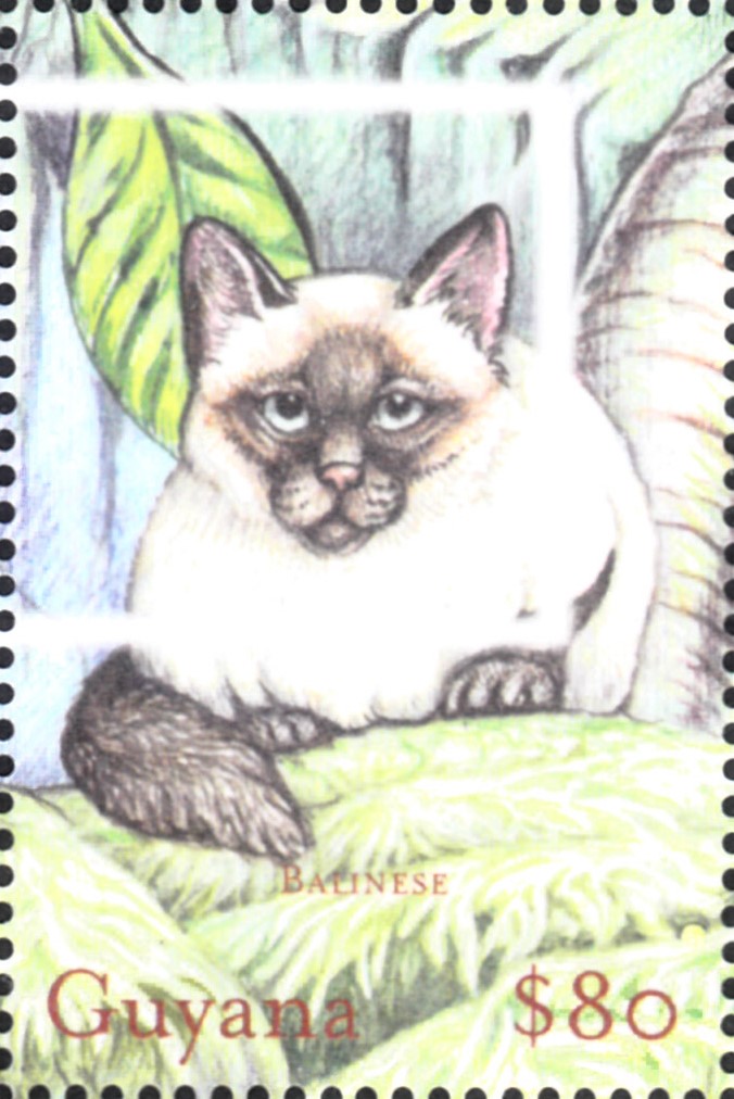 Diese Marke aus Guyana (MiNr 7139) stellt uns eine Balinesenkatze vor.