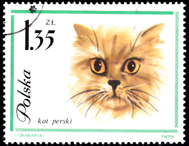 In dieser Serie aus Polen gibt es eine weitere Marke (MiNr 1480) mit dem Kopf einer Perserkatze.