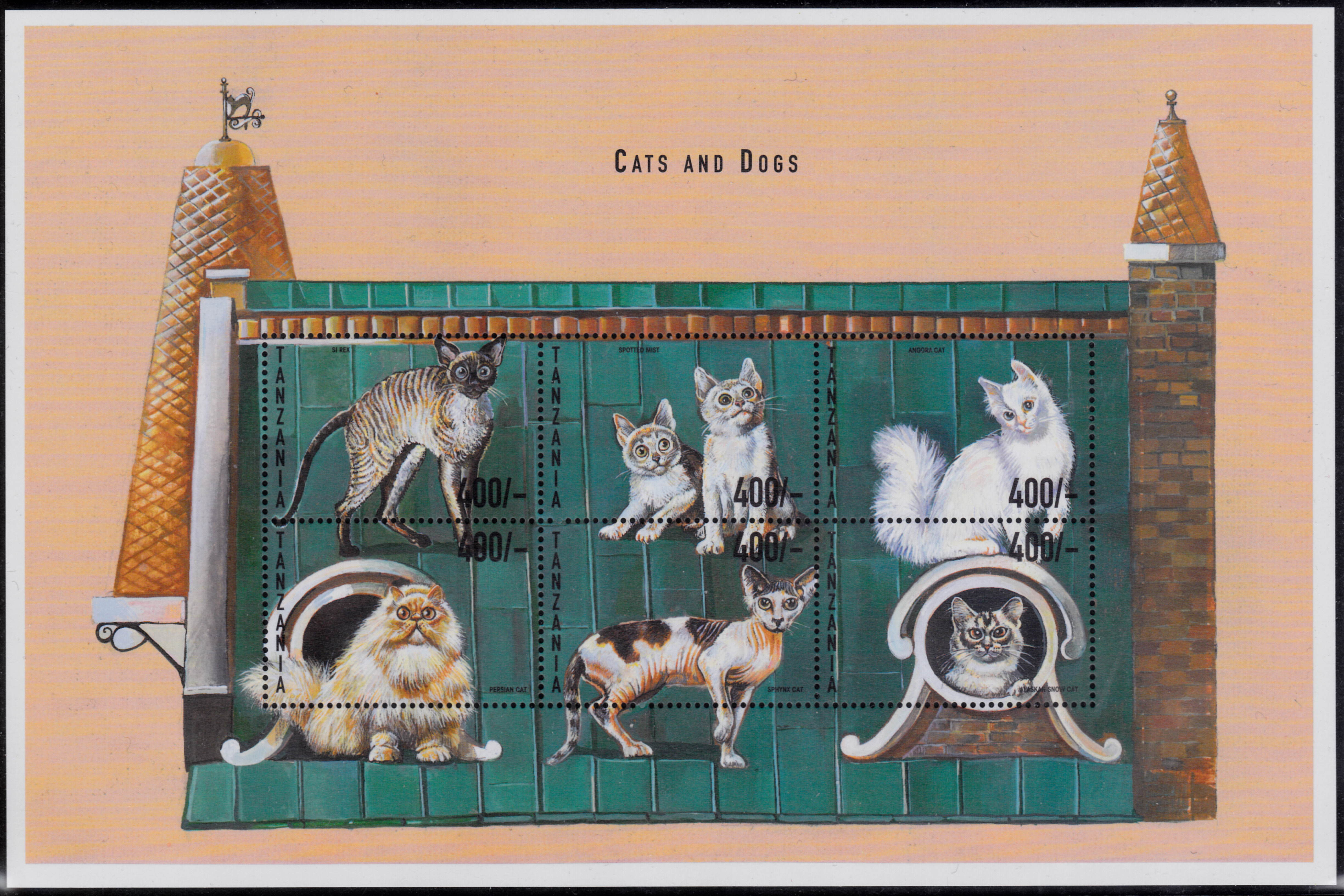 Diese Marke ist zusammen mit fünf weiteren Marken mit Katzen in einem Kleinbogen erschienen. Hier zeige ich den kompletten Kleinbogen.