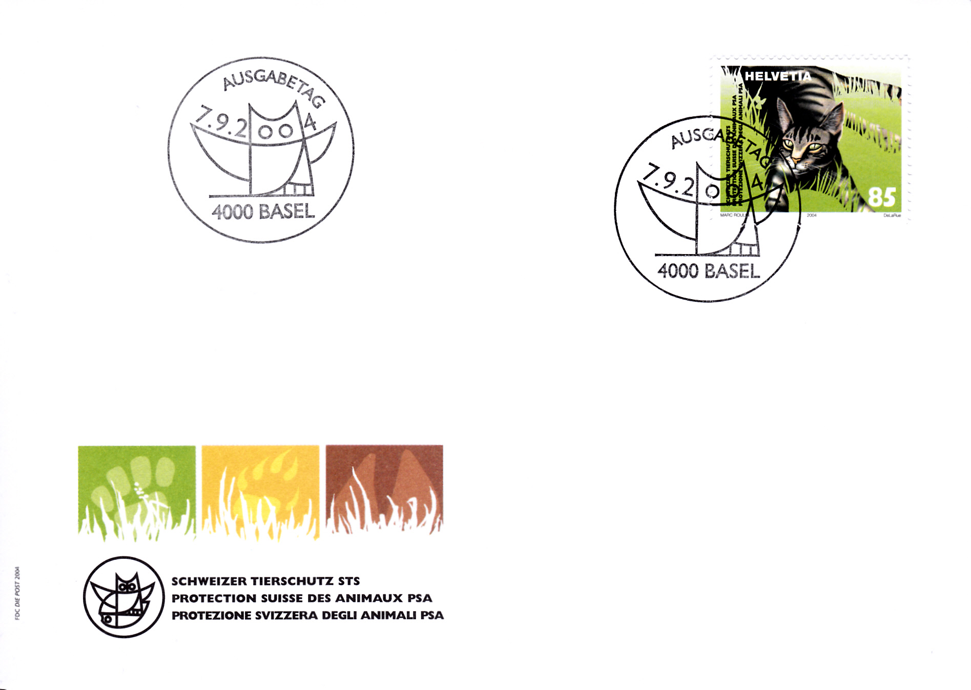 Diese Marke aus der Schweiz (MiNr 1886) bildet ebenfalls eine Hauskatze (Felis domestica) ab.