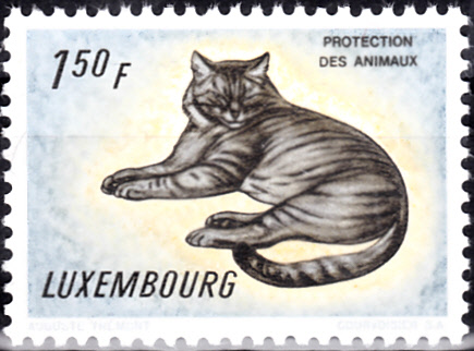 Aus Luxemburg kommt diese Marke (MiNr 638) mit einer Hauskatze.