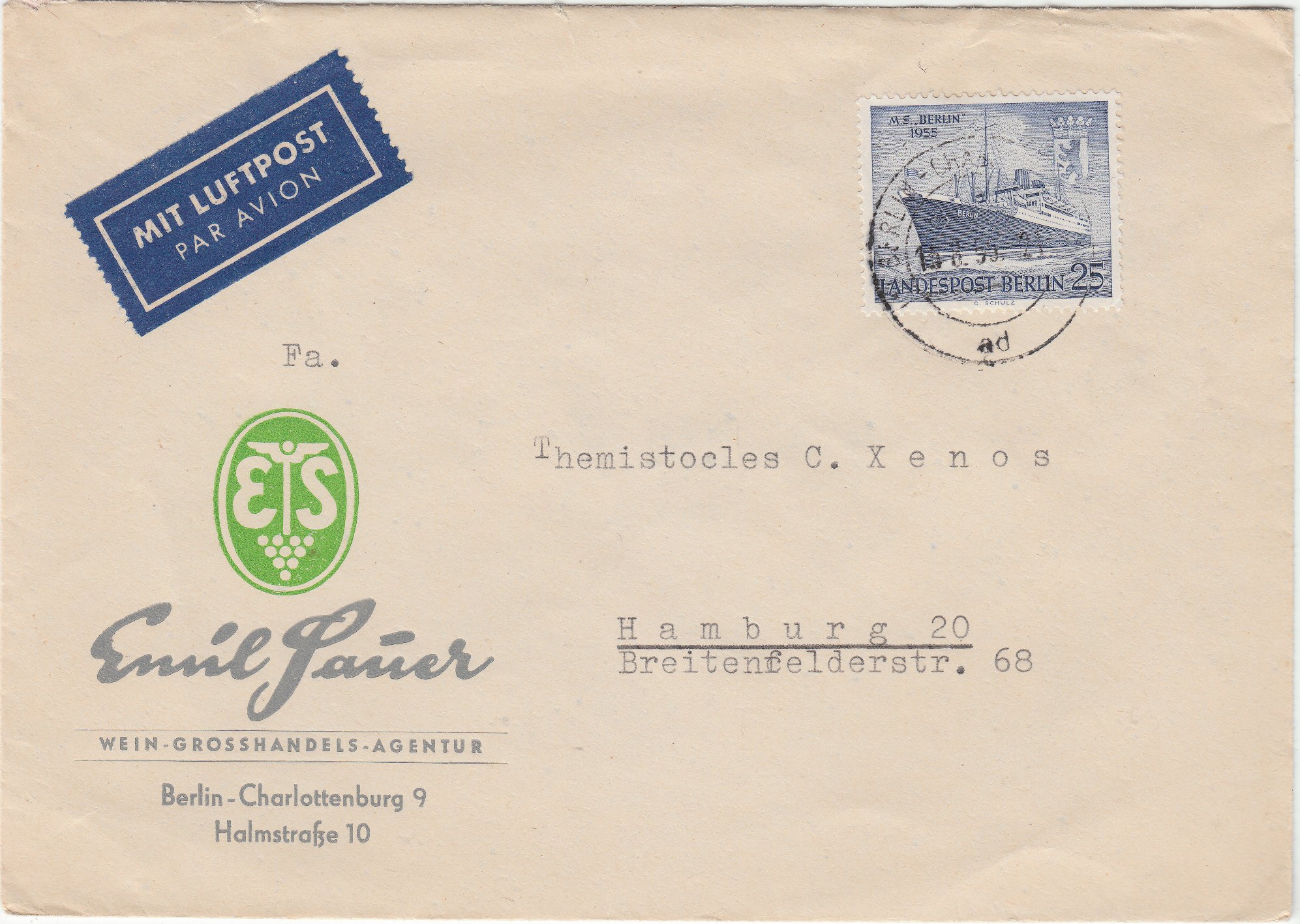 Der Brief wurde am 15.08.1955 als EF frankiert mit einer MiNr. Berlin 127: