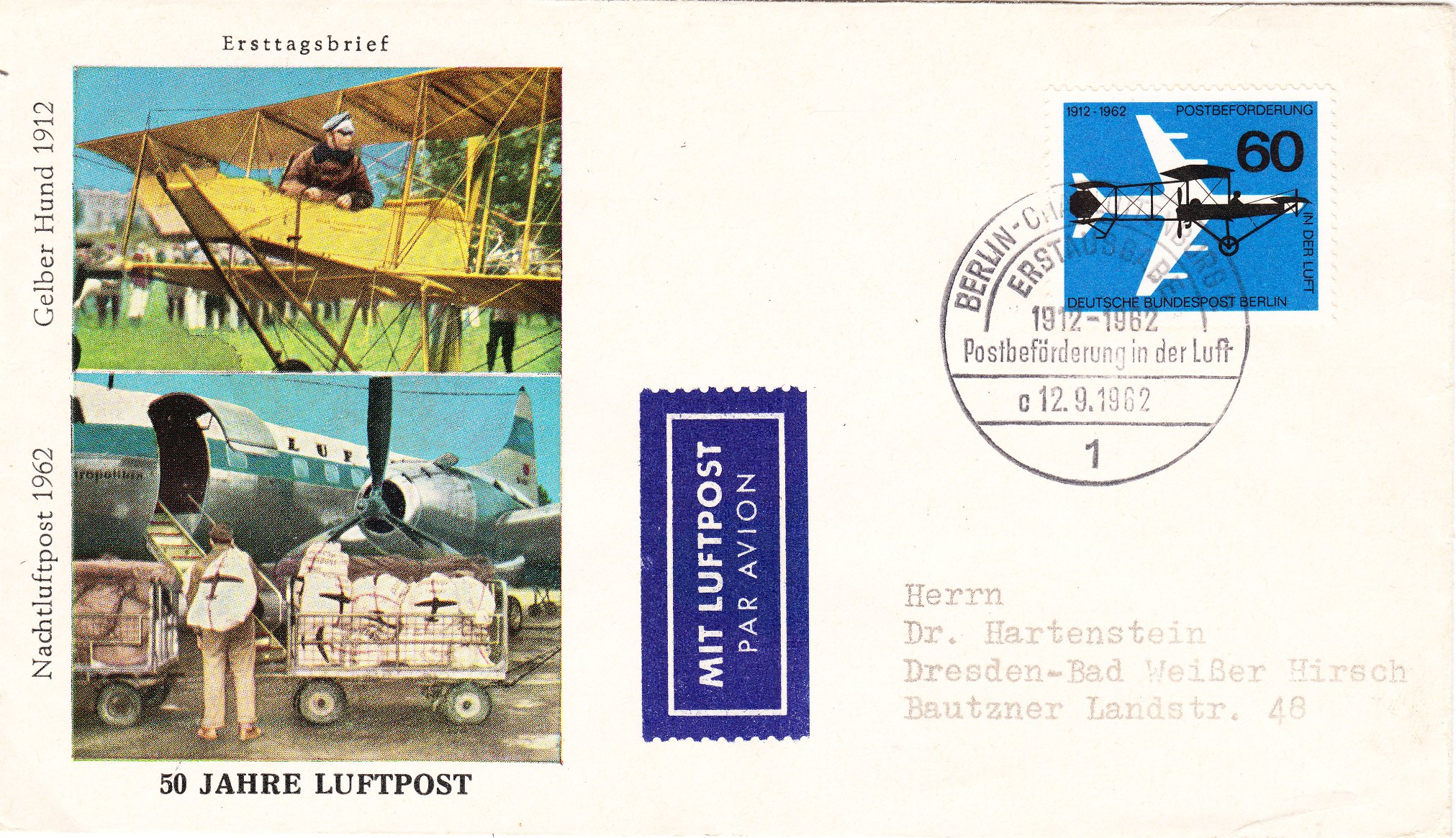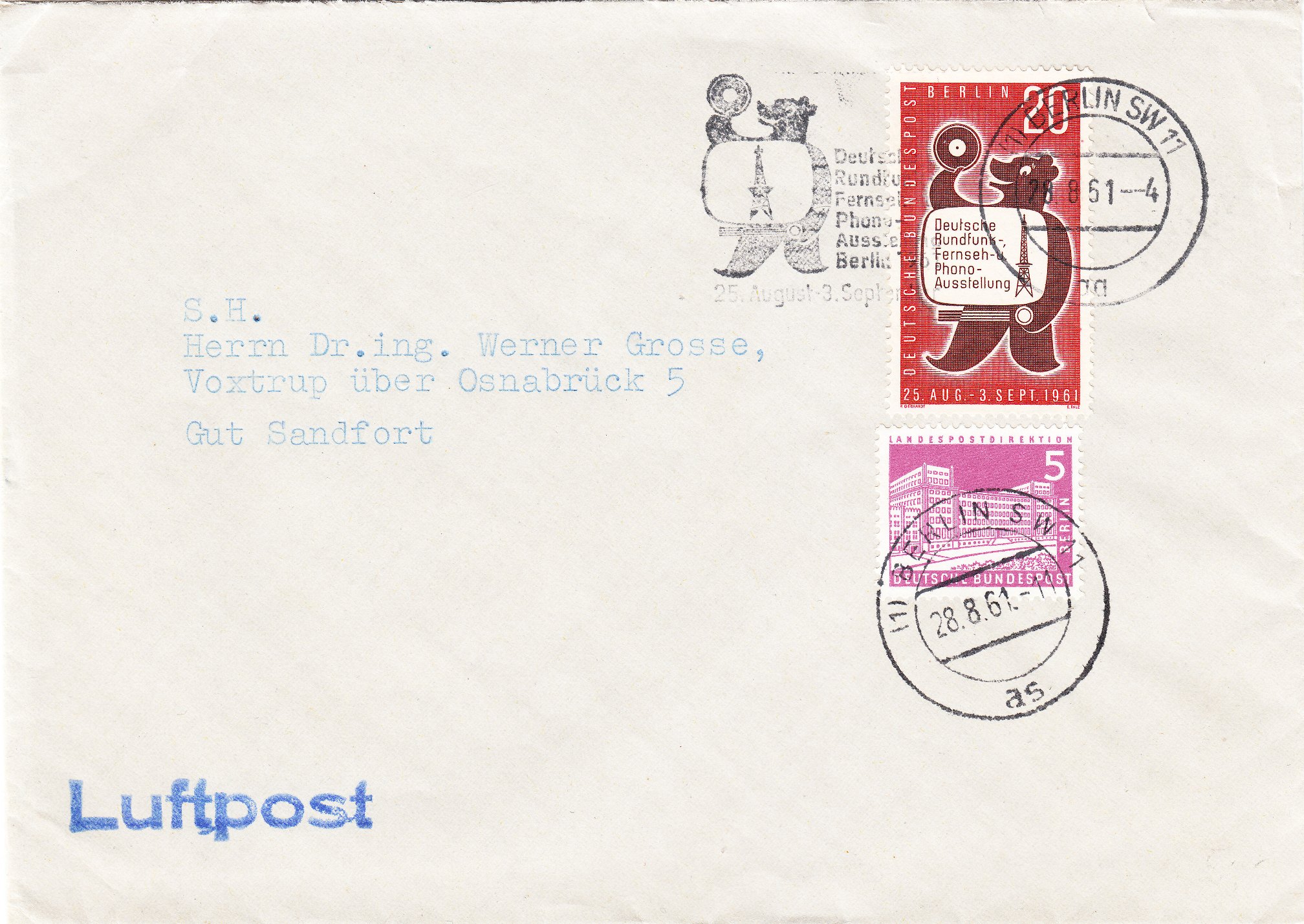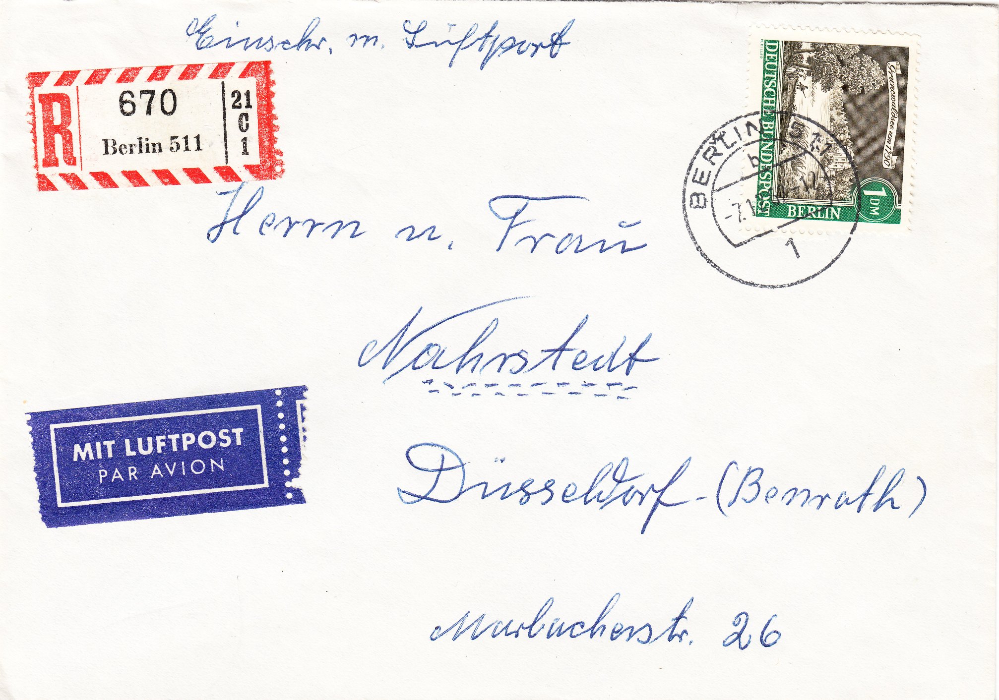 Als Luftpostgebühr wurden 5 Pfennig pro 20 Gramm fällig.