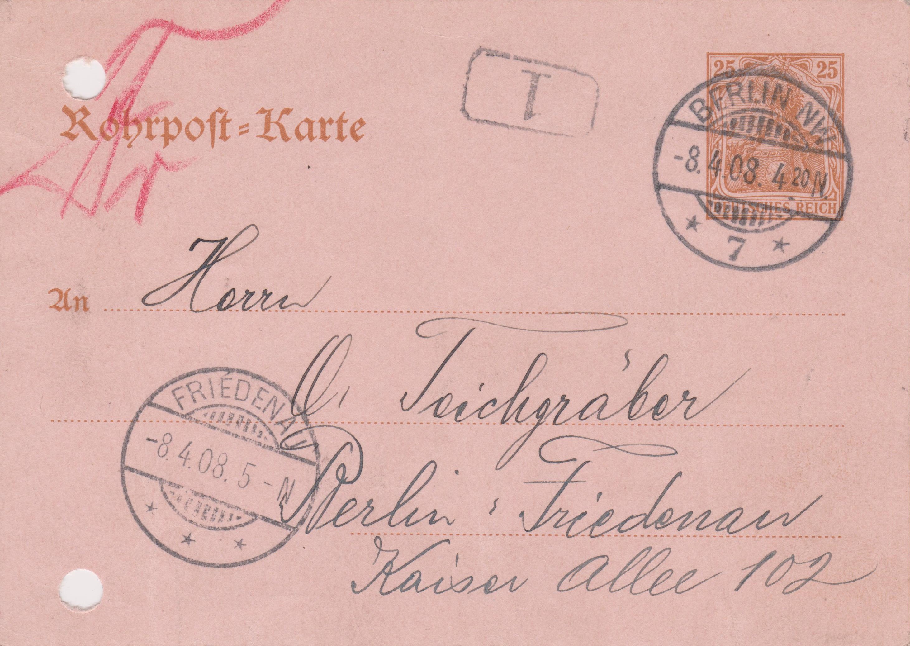 Handschriftlicher Leitvermerk "Fr", per Rohrpost befördert nach "FRIEDENAU".