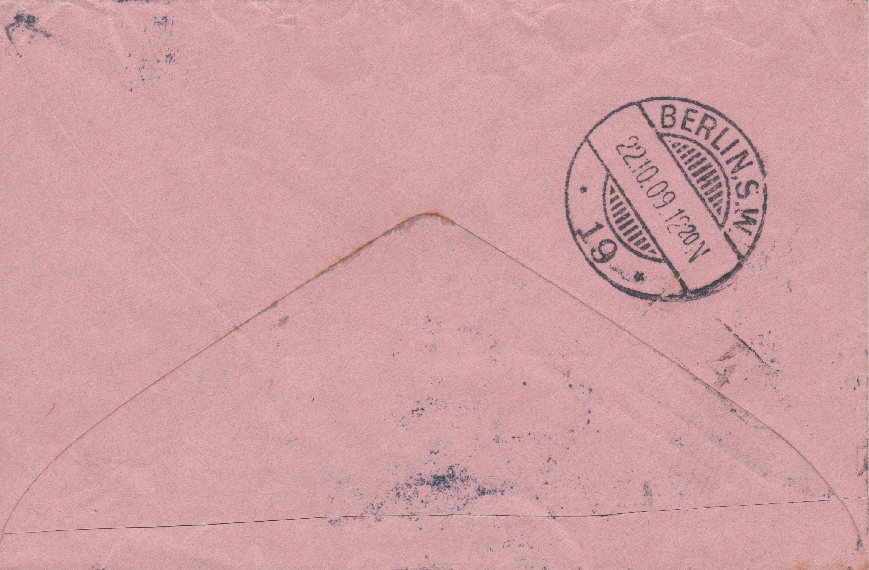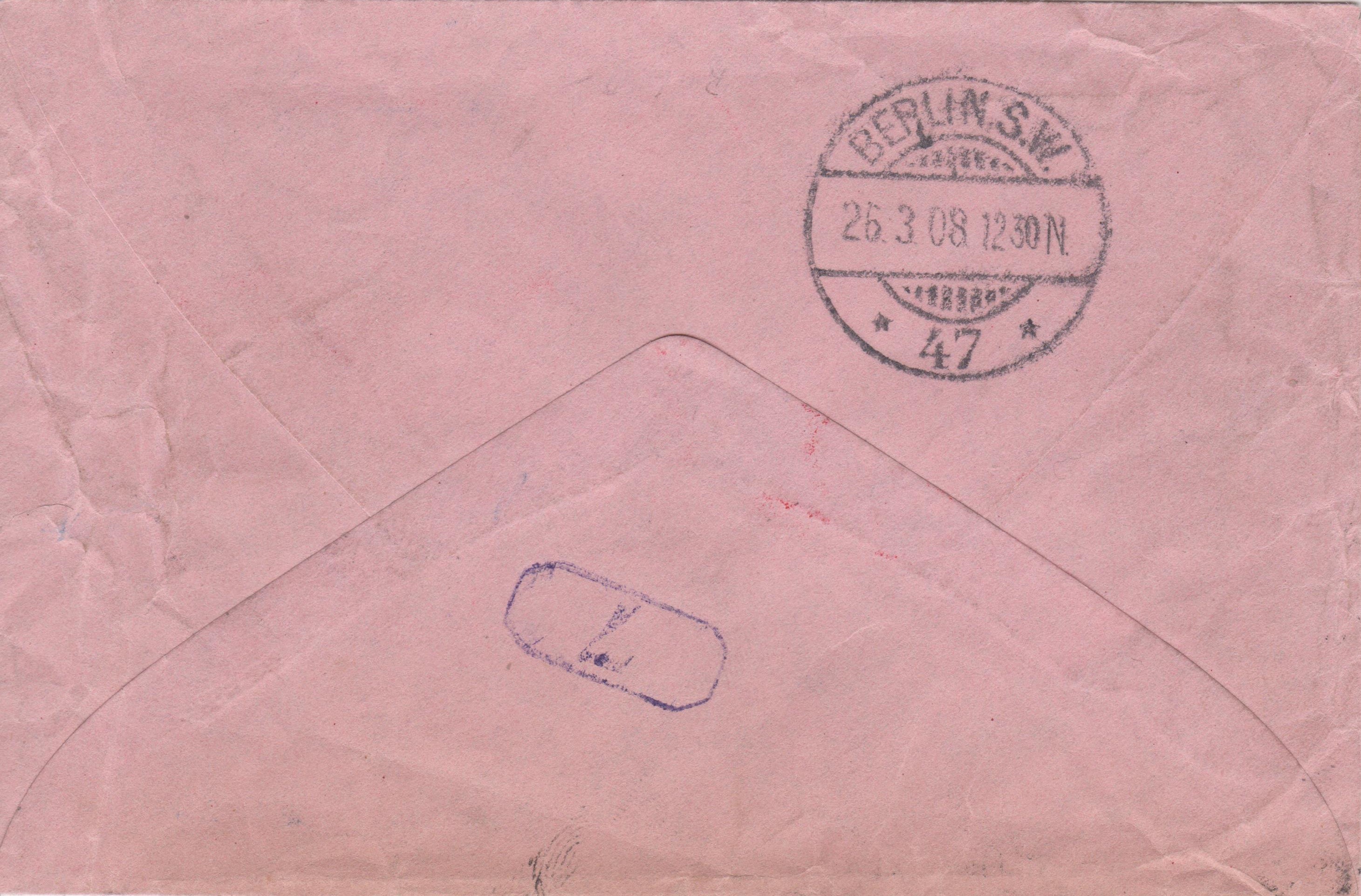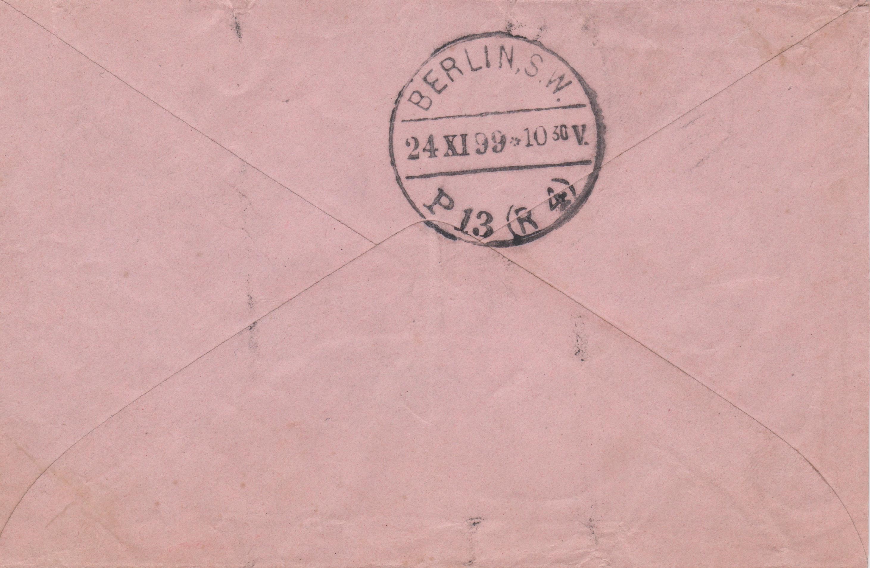 Rückseitig Ankunftstempel der Berliner Rohrpost "BERLIN, S.W. P 13 (R 4)":