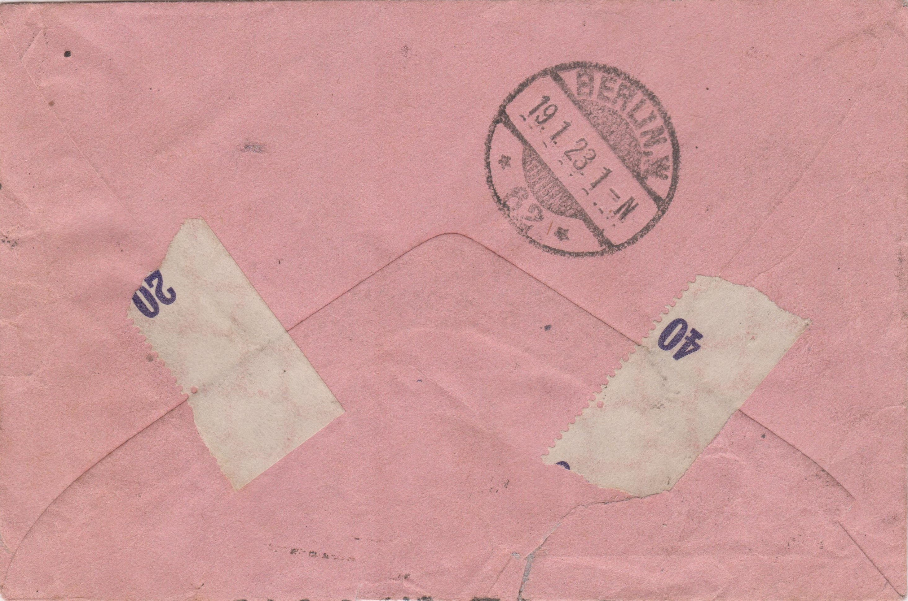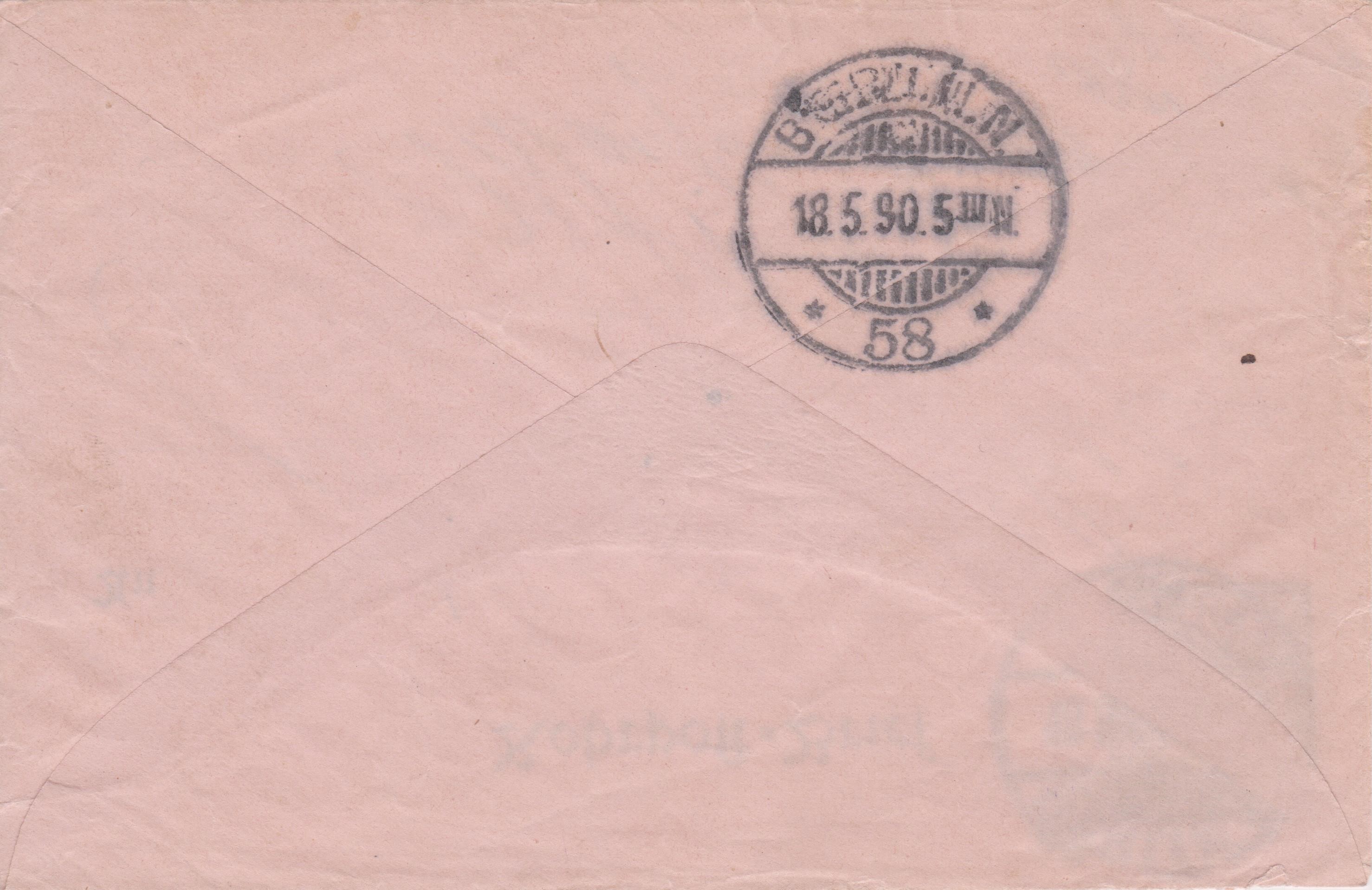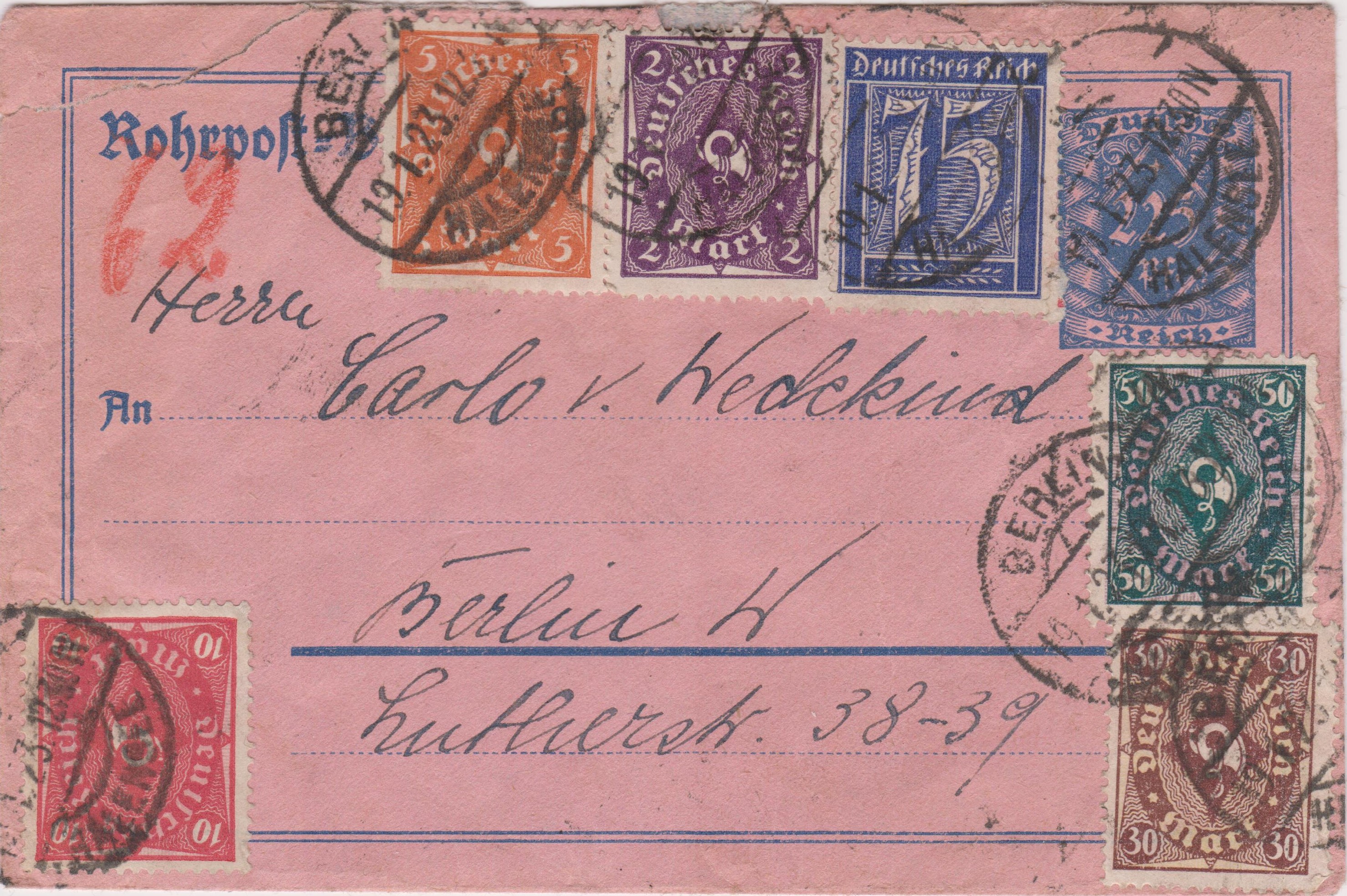 Rückseitig Ankunftstempel der Berliner Rohrpost "BERLIN, S.W. P 46 (R 18)":