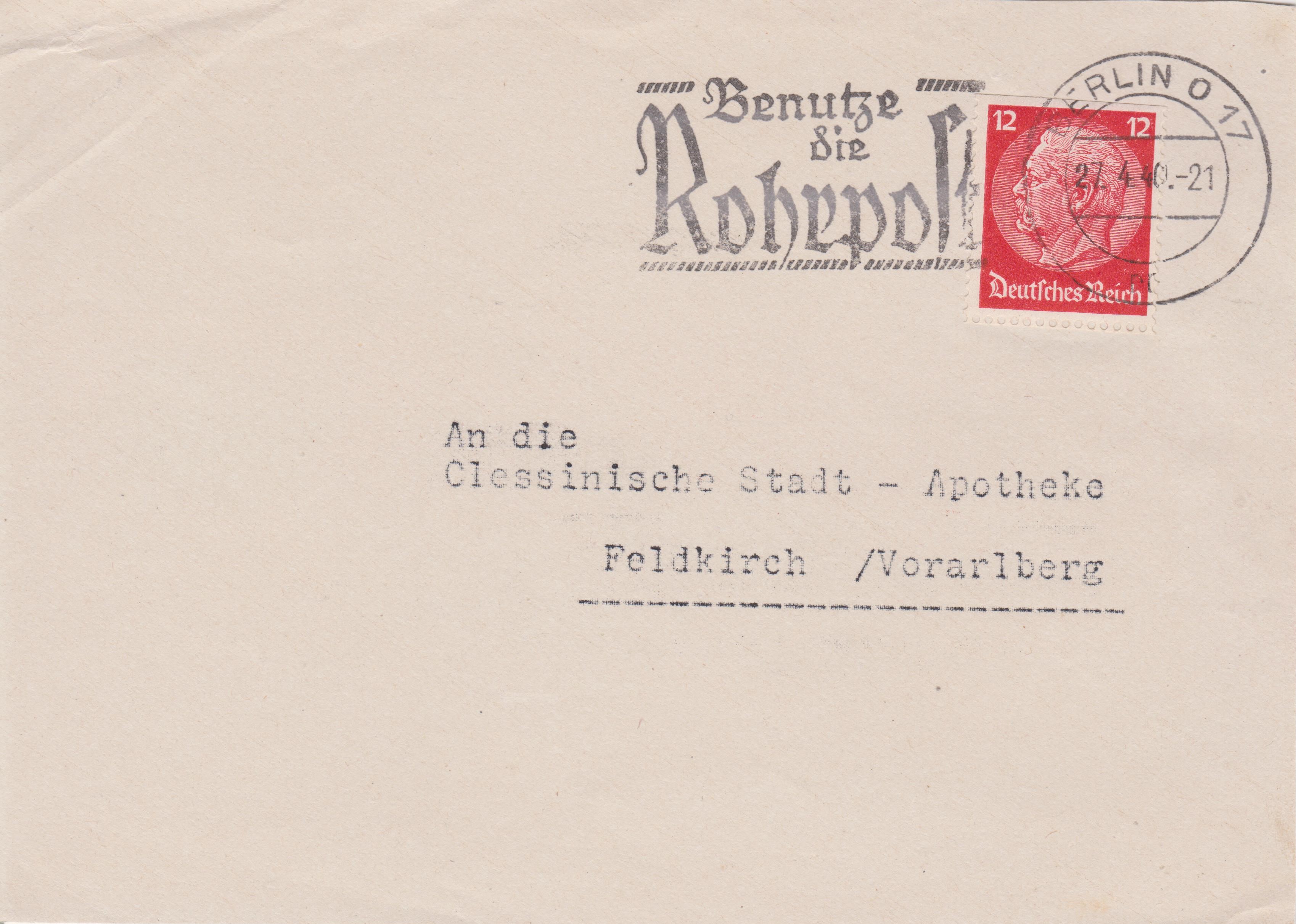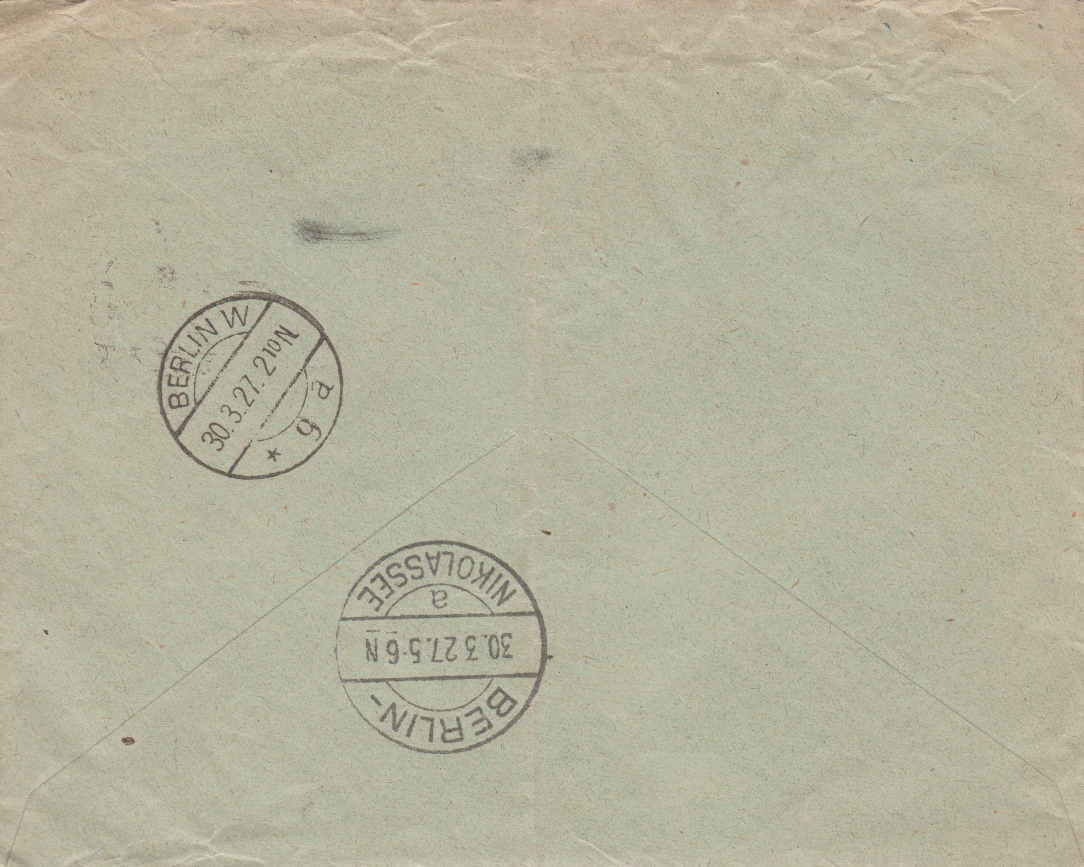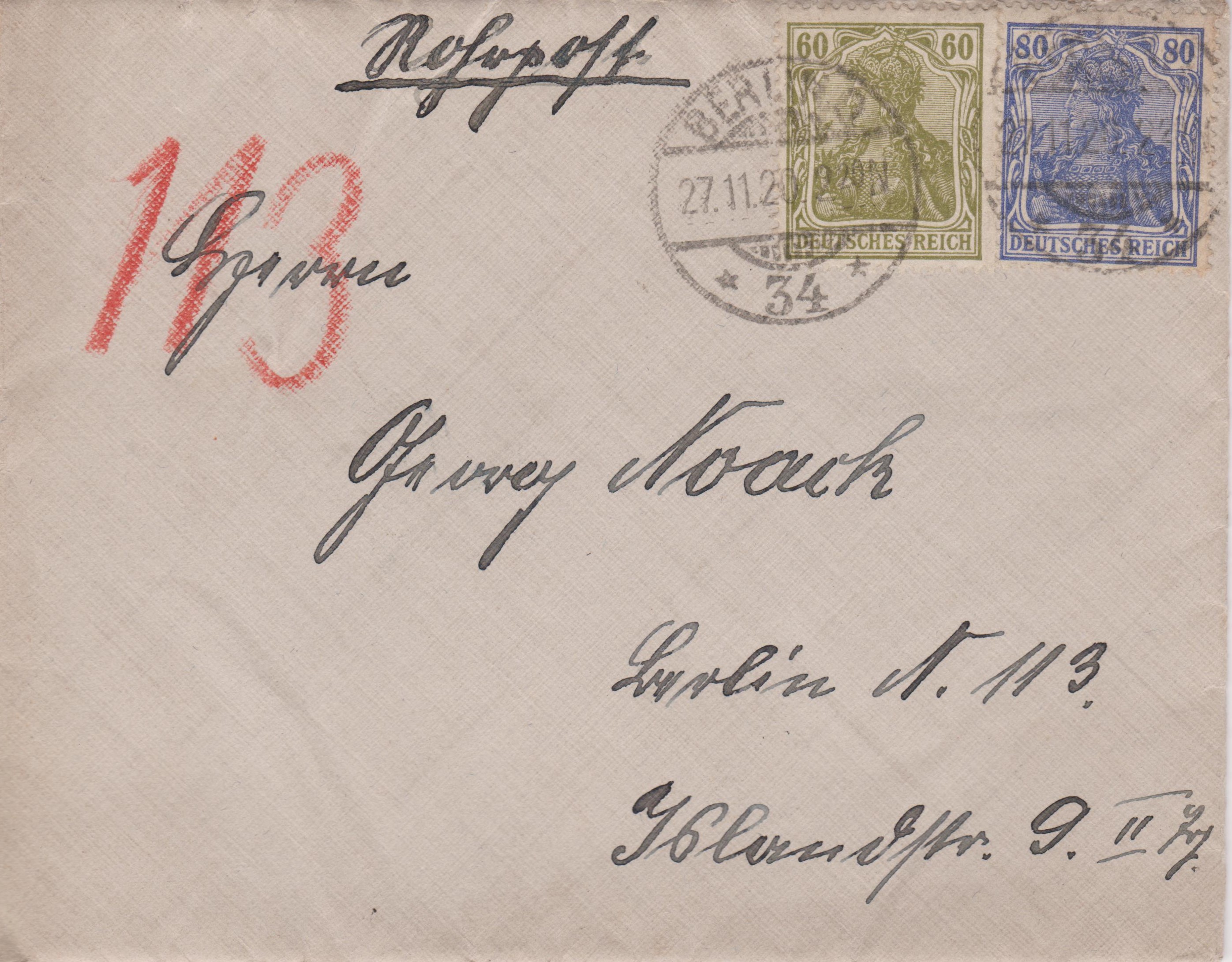 Rückseitig Ankunftstempel der Berliner Rohrpost "BERLIN, S.W. P 46 (R 18)":
