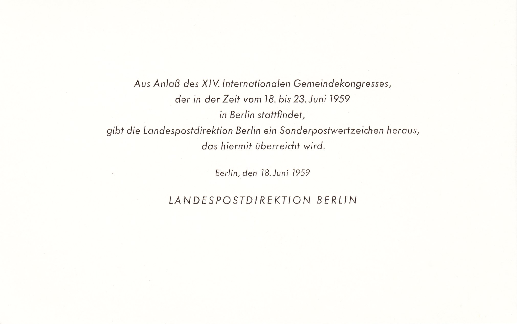 Zu Werbezwecken legte die Landespostdirektion Berlin jeweils Klappkarten in einer Auflage von 500 Stück auf, die als "Ministerkarten" bezeichnet werden.