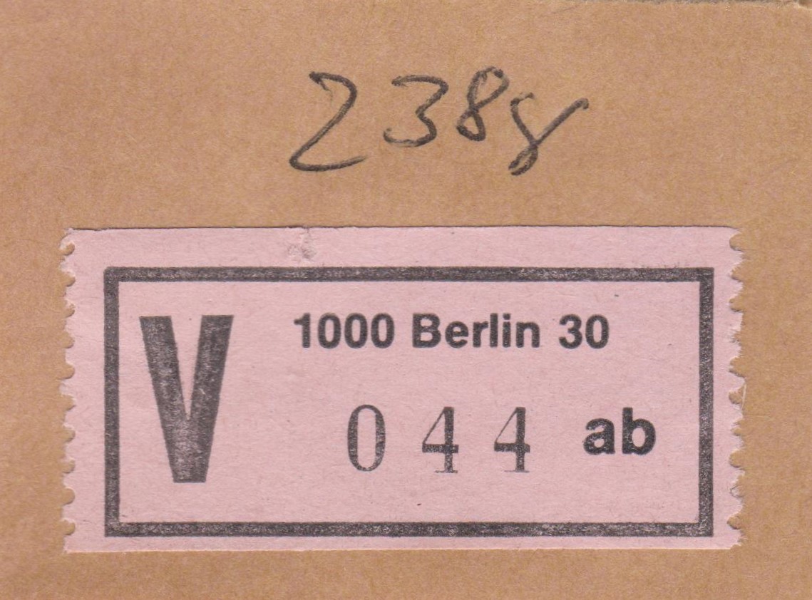 V-Zettel "044 ab" aus "1000 Berlin 30" auf Briefstück: