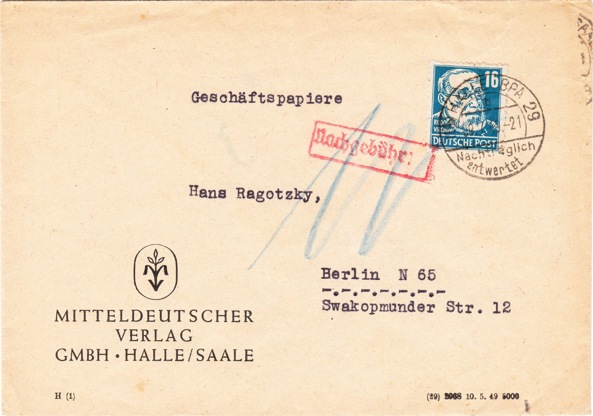 Hier zwei Beispiele aus dem Jahr 1949, bei denen es sich um die Sendungsarten "Geschäftspapiere" sowie "Bücherzettel" handelt, die beide in Form solcher Postkriegsbelege nicht so häufig am Markt zu finden sind wie Briefe, Postkarten und Drucksachen: